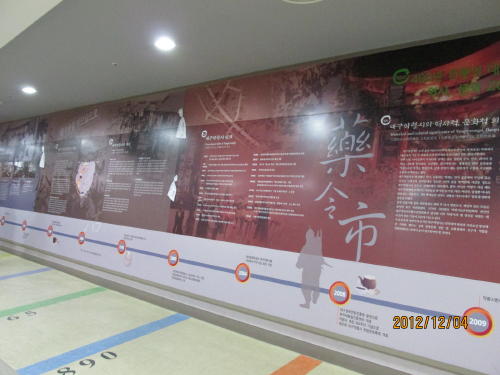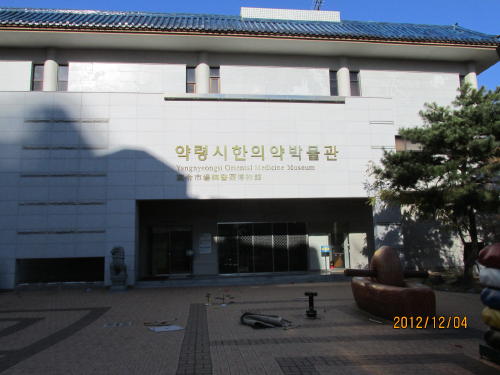 海印寺から一時間、大邱の市内、薬令市場に到着、漢方薬の薬屋さんが集まっている所です。西洋医学は治療の医学、韓方医学は予防の医学。これが大きな違いです。つまり西洋医学は掛った病気を手術や薬で治すもの、韓方医学は病気に掛らないような身体を作る医学です。薬も西洋医薬は科学的に作る物、なので副作用があり強い。韓方医薬は自然の中から採取するもの。だから副作用も少ない。身体にやさしい。幸いにも現在は両方手に入りますのでうまく使い分け病気にならないように、なったら、初期の内に治療しましょう。韓方医薬の面白い事を聞きました。顔色で悪い所を見極めて、顔色と同じ色の食べ物を食べさせるのだそうです。