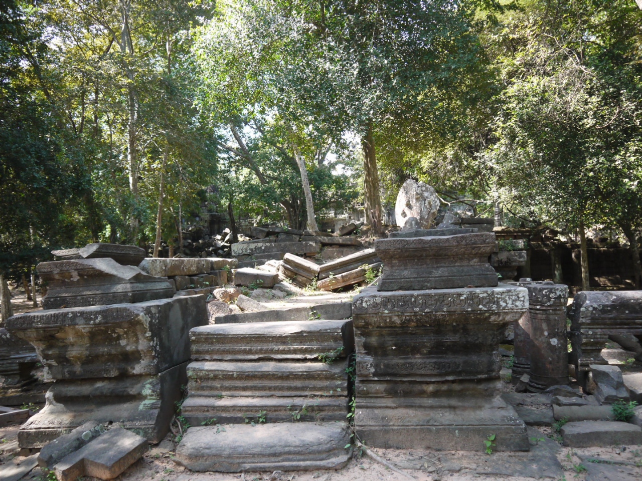 ベンメリアはアンコールワットの試作品だったそうで、小型のアンコールワットのようです。アンコールワットも発見当初は半分ベンメリアのように倒壊していたそうです。