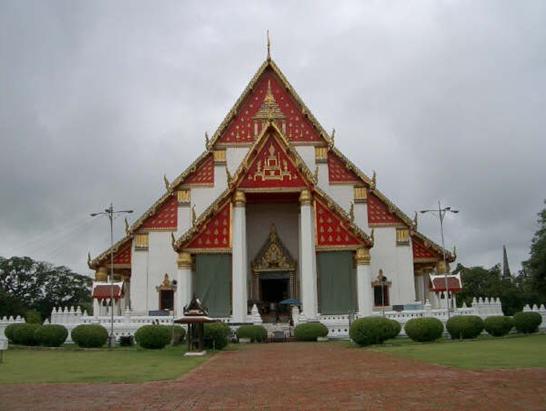 アユタヤ観光の途中で寄った場所で、白い建物の中には金ぴかの大仏様風の仏像が居て、