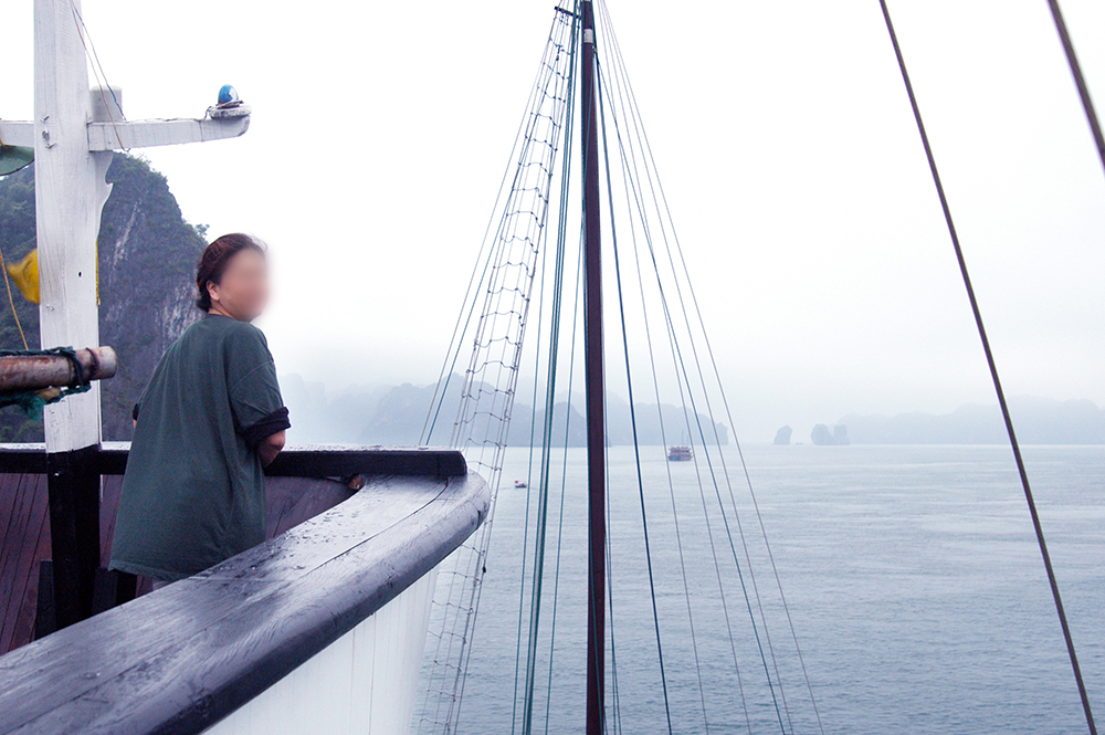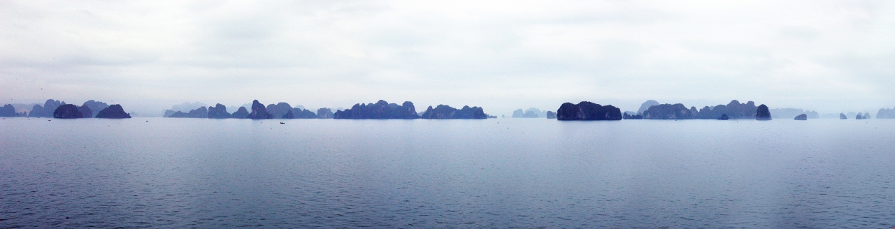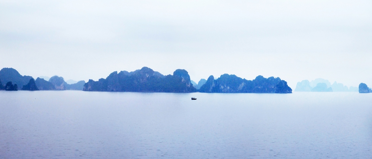 日頃の行いの所為か、曇り時々霧雨の中のクルーズとなりました。が、これが幸い。思いもかけない水墨画のごとき世界に出会う事になりました。海の桂林とは良く言ったものです。
