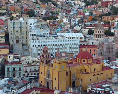 世界遺産の街グアナハトの絶景スポット。ピピラの像の前の広場からは街を一望できます。夕方だったかもしれませんが観光客はあまり居ませんでした。4~5件のお土産屋が有り、カエルに因んだお土産グッズがいっぱい売っていました。