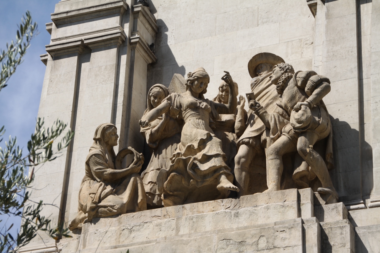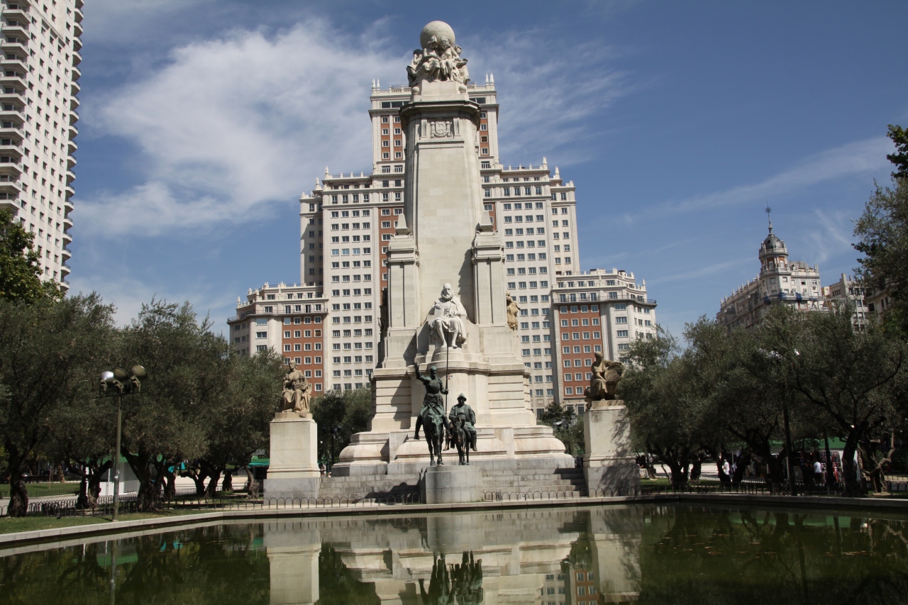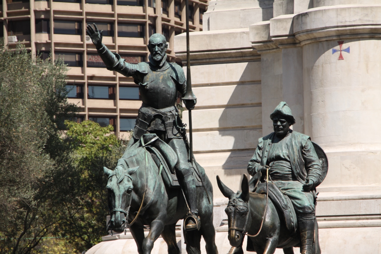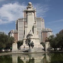 現地発のマドリッド市内観光ツアーでも訪れたのですが、そのときにはあまり時間がとれなかったので再度個人で訪問しました。観光名所のためか警官が待機しており、周囲に警戒しながらも写真撮影を楽しみました。ドンキホーテとパンチョ像の前には常に観光客がいるのでセルフ撮影には少し時間がかかりましたが。
