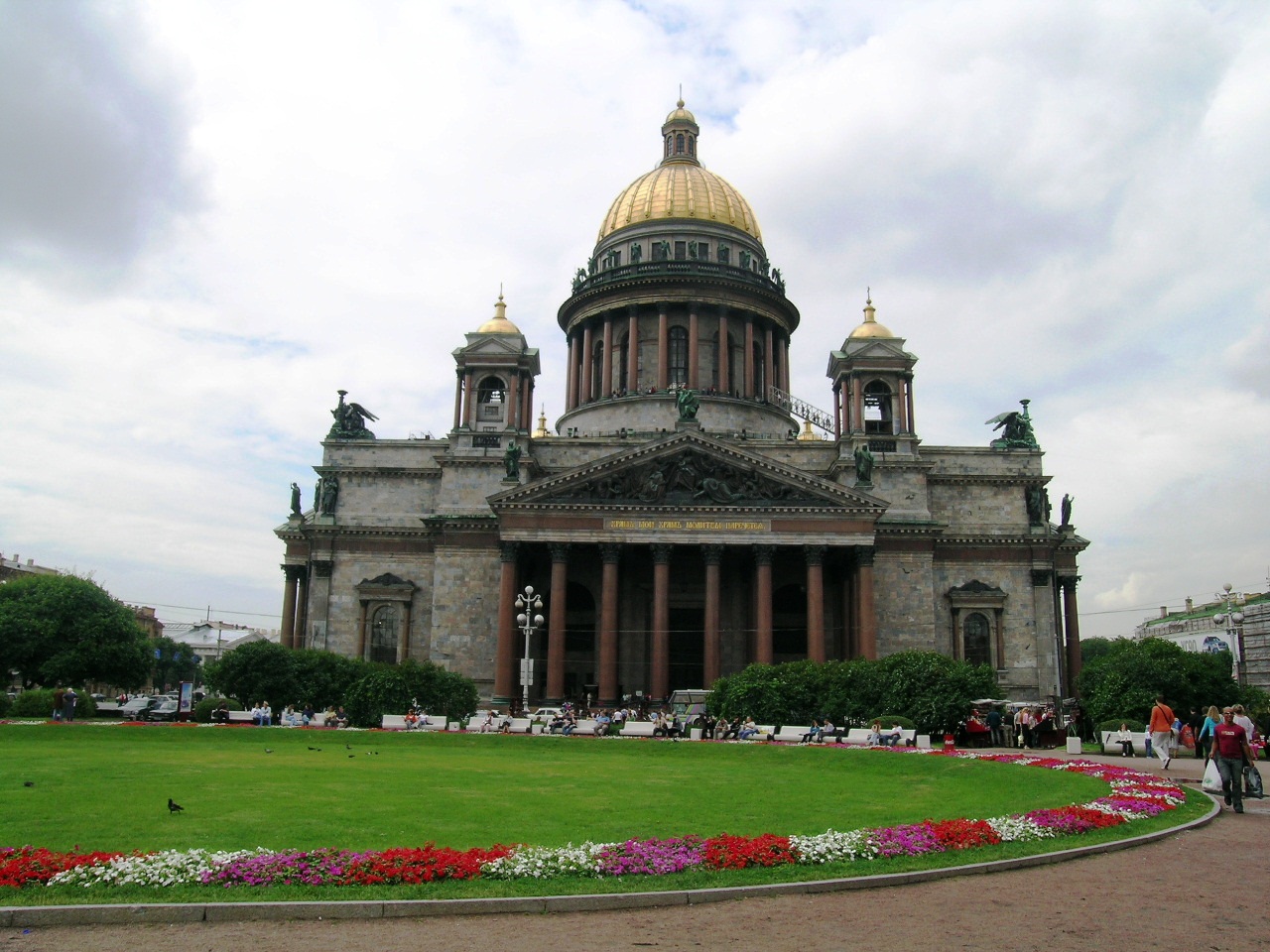 外から見ても、中から見てもきれいな大聖堂です。ドームの展望台に上がれば、サンクトぺテルブルグの市街を一望できます。聖堂の中と展望台は別料金で高いですが、両方とも見る価値あります。また、外からの聖堂全体の眺めも周りの花とのコントラストがきれいです。