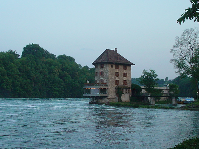 ラインの滝はヨーロッパ最大の滝ですが、ナイアガラのように開発された地域ではなく滝周辺に昔からあると思うような建物が1つあり、ここがレストランになっています。中に入ると窓が大きく滝を眺めながら食事ができます。ワインも飲み、滝を見ながらディナーを楽しみました。