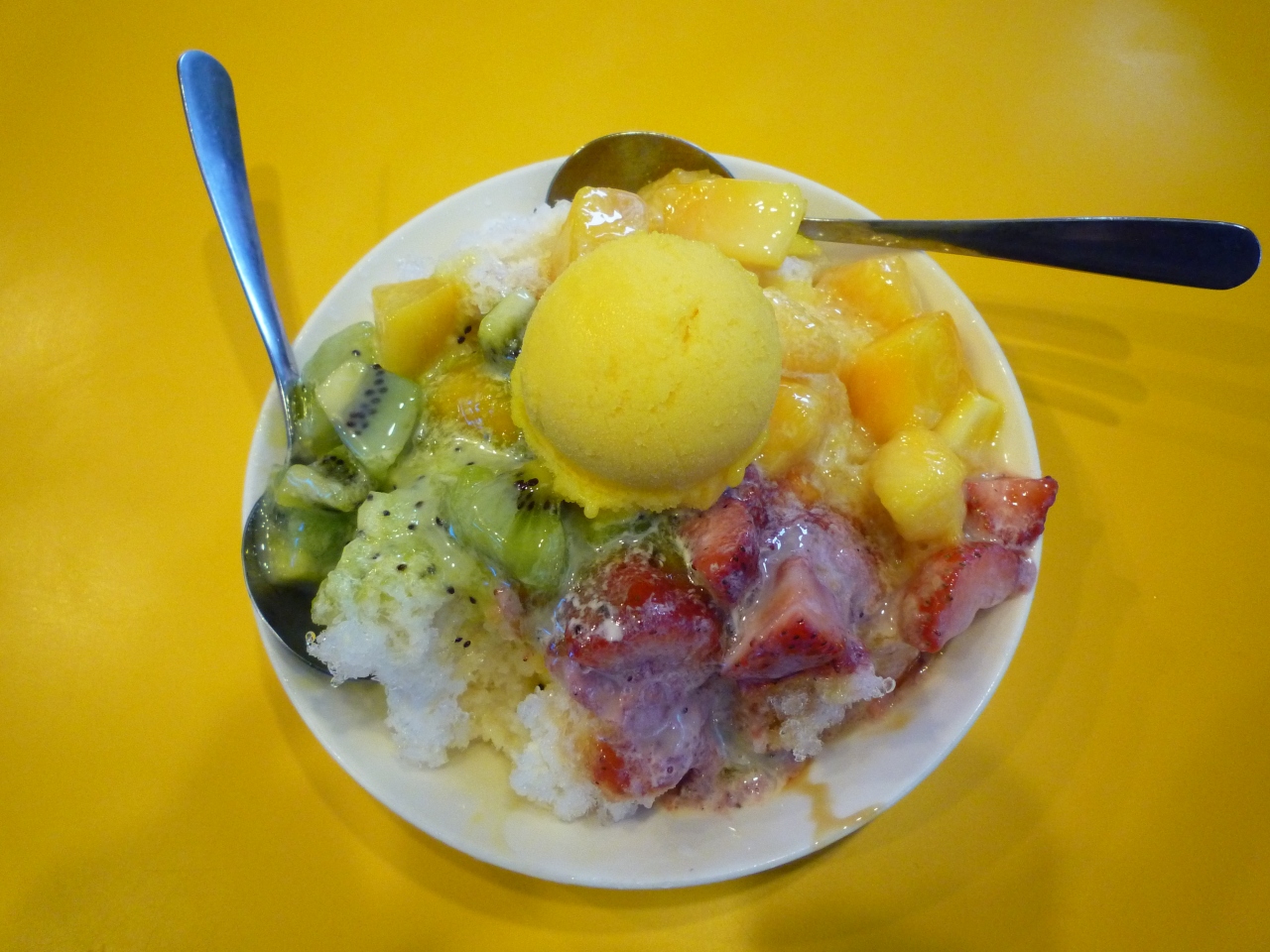 3種類のフルーツとマンゴーアイスが乗ったかき氷にしました。