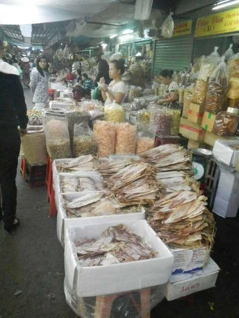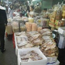 市場を歩くのが好きで、どこの街でも市場があるといってみることにしている。表から入ると、花屋、宝石店、土産物屋の笠を置いている店、スルメを売る店などが無秩序に並んでいる。建物を通り抜け、屋外に出ると、一転して、魚、野菜、果物などの生鮮食料品売り場になっている。