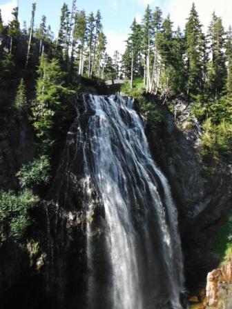 ロングマイアからパラダイスポイントへ行く道のパラダイスポイント手前にある水量の多い滝です。滝全体を見るためには駐車場から細いトレイルを10分程度下る必要があります。マウントレーニエ国立公園で一番迫力ある滝だと思います。