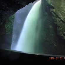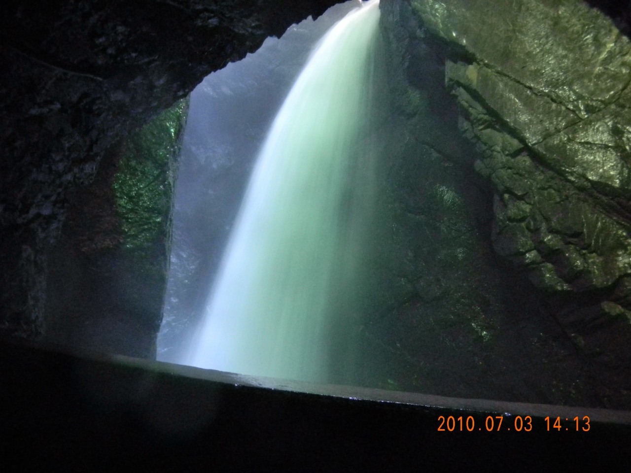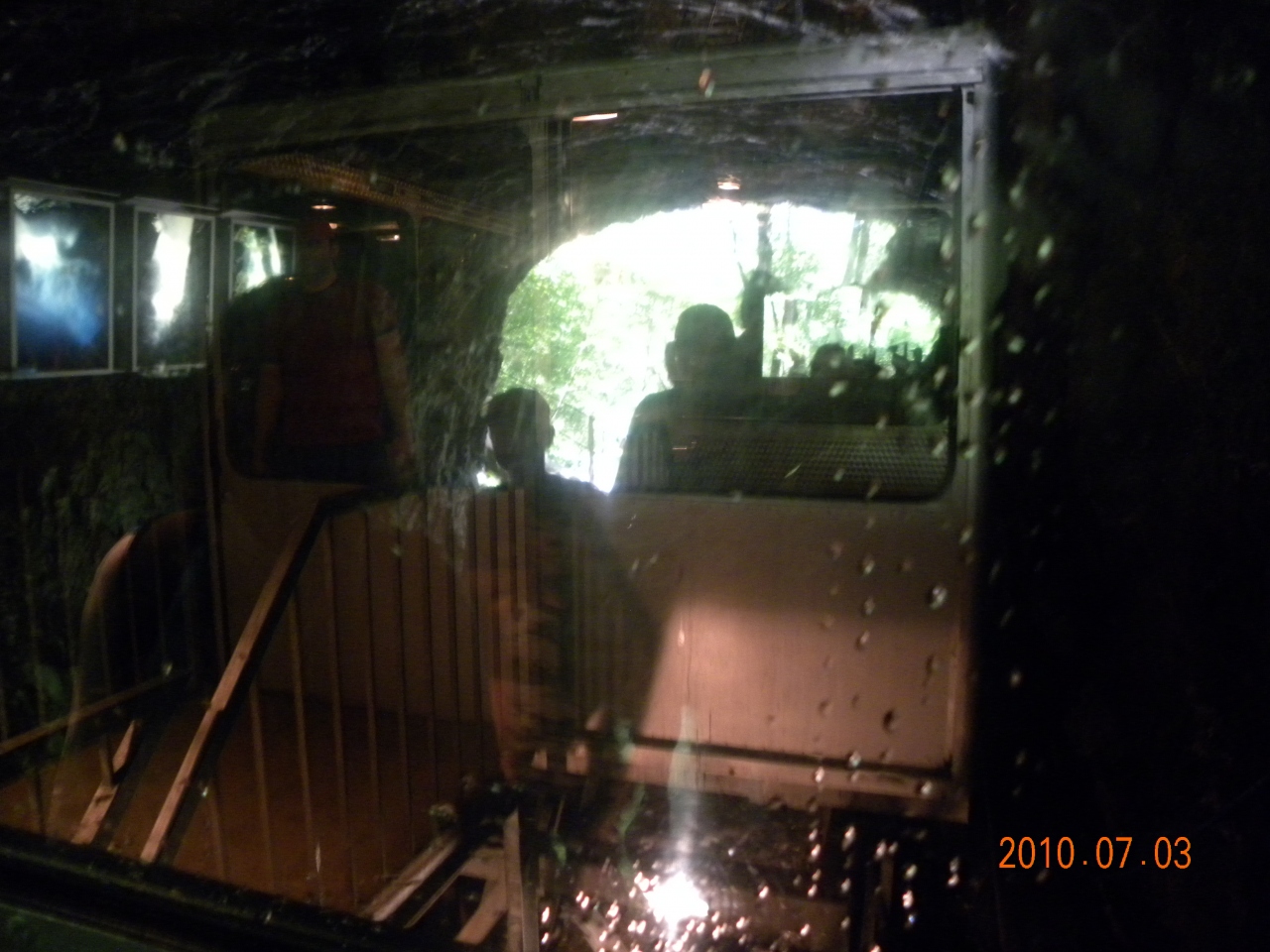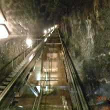 そこから、トンネルに設置された急勾配のケーブルカーで滝の中間部まで行きます。