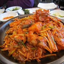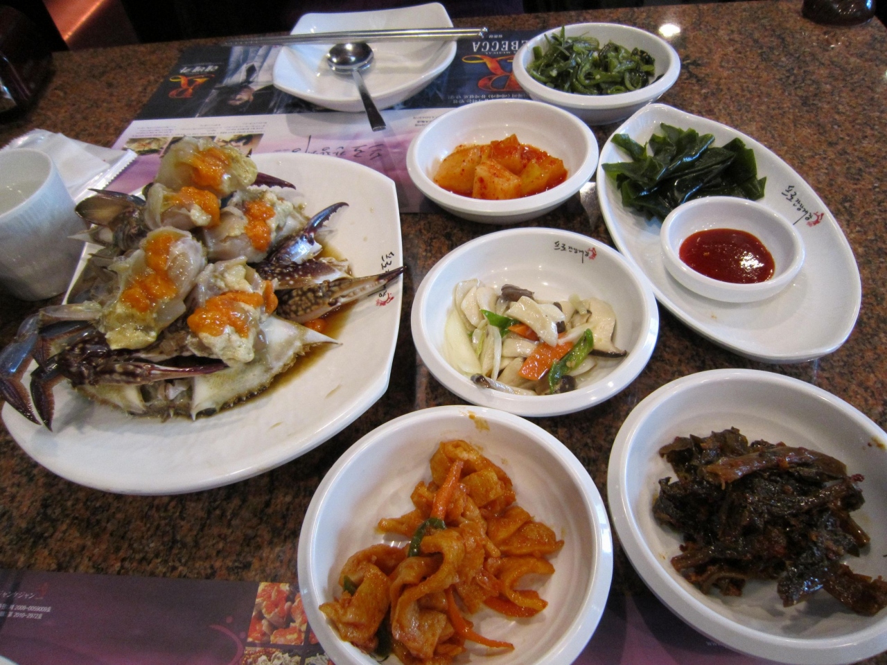 カンジャンケジャンとアンコウ鍋を頼んだら二人でちょうど良い(いや、多いくらいか)量になりました。カンジャンケジャンはしょうゆ味で、濃厚でねっとりとした身が美味しく、ご飯と食べるのが美味しかったです。アンコウ鍋ももやしの量がたっぷりでアンコウの身はそれほど多くありませんでしたがお腹いっぱいになりました。もう一回食べても良いなと思うくらいでした。
