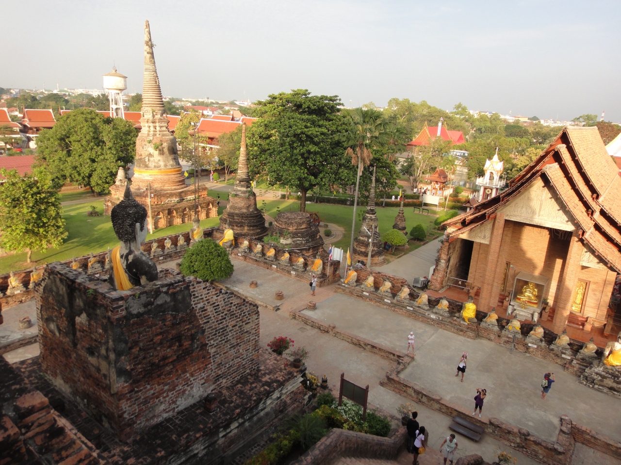 タイの友人に連れて行ってもらったのでアクセスはよくわかりません。中央の塔には階段を使って登ることができます。他の寺院の階段に比べたら登り易いと思います。階段を一番上まで行かずに3分の2ぐらいの所で左右の階段を上ると塔の回廊から展望を楽しむことができます。