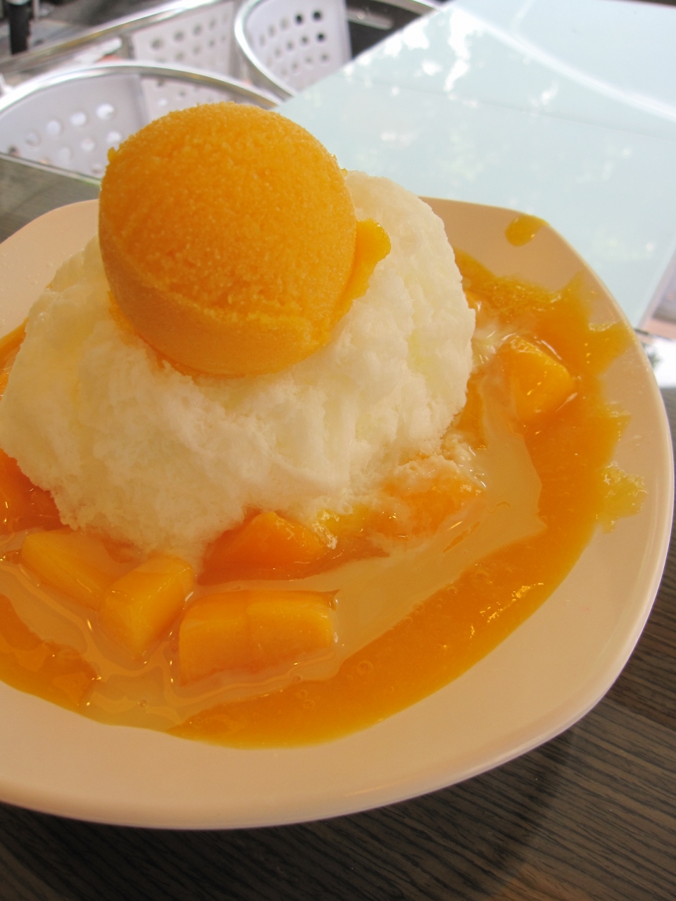 看板商品である、フレッシュマンゴーにマンゴーシロップと練乳をかけたカキ氷にマンゴーアイスを乗せた氷を注文。濃厚なマンゴーソースと練乳のミルキーさが相まって、とてもおいしかったです。ボリューム満点で、冷房が効いた店内では、食べ終わったあとはちょっと身体が冷えてしまいました。