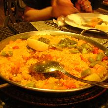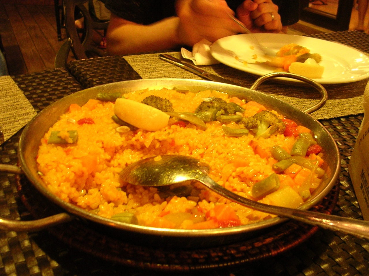 二日目(野菜パエリヤ、ピザ、ビール、ジュース、ブリュレで四人で2500円程度)