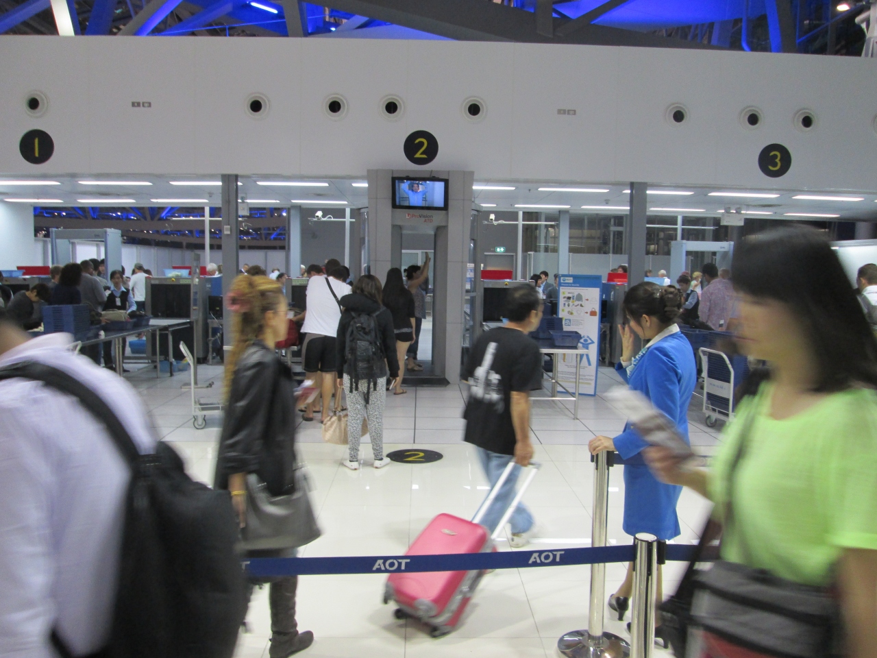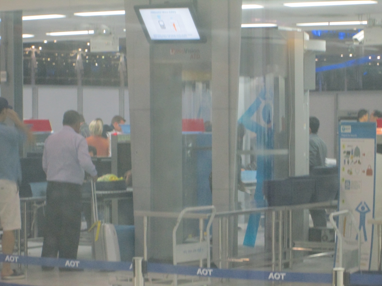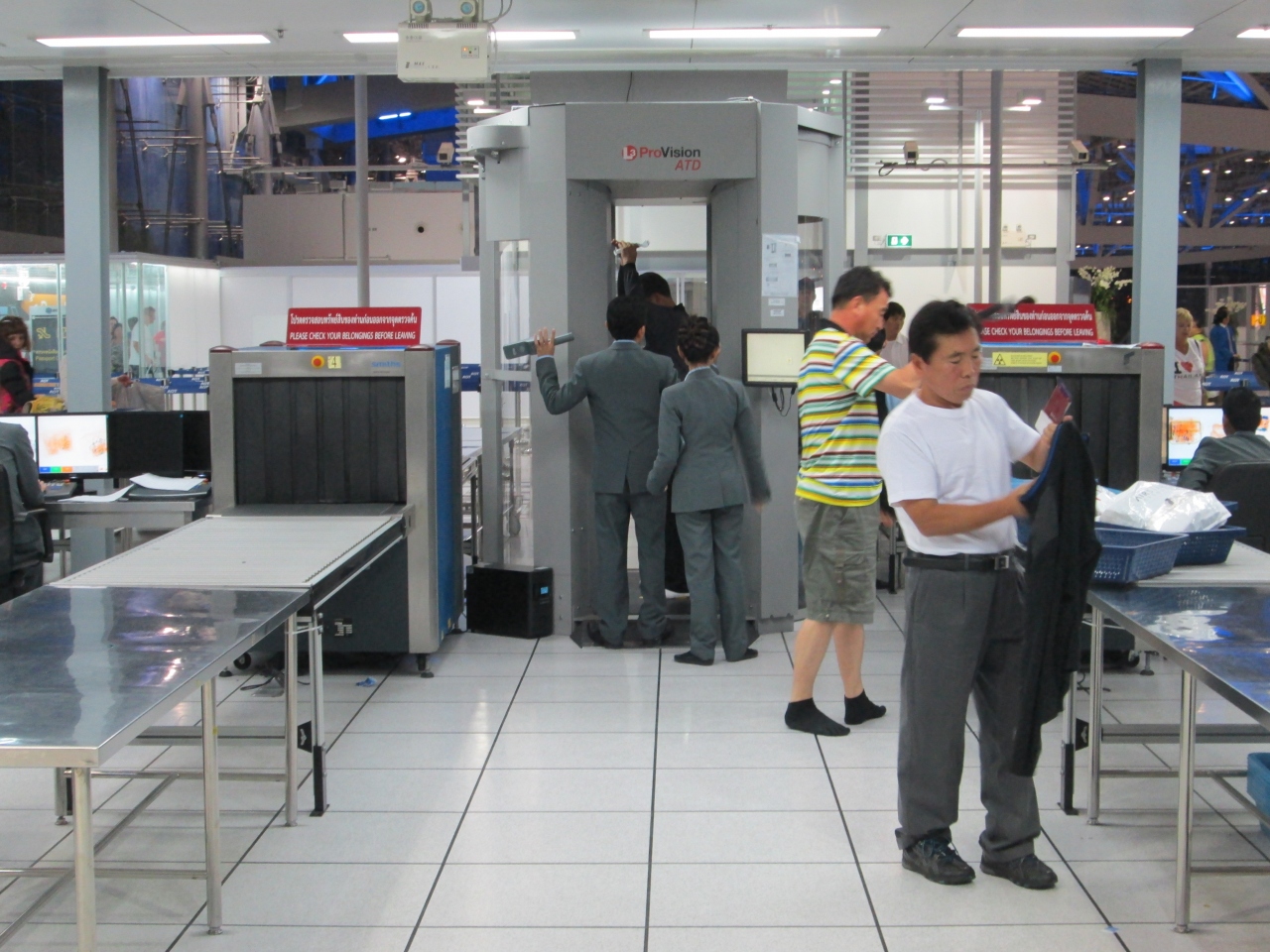 昨年、出国のためのセキュリティーチェックはエスカレーターで上階に行くというシステムに変わりましたが、セキュリティーチェックのマシンも新しい機械が導入されていました。おもしろいので受けてみました。おそらく、タイでは最新鋭なのでしょう。昨年のクリスマス時期と1/6に利用しましたが、一般の出国審査場は想像していたより混雑していませんでした。