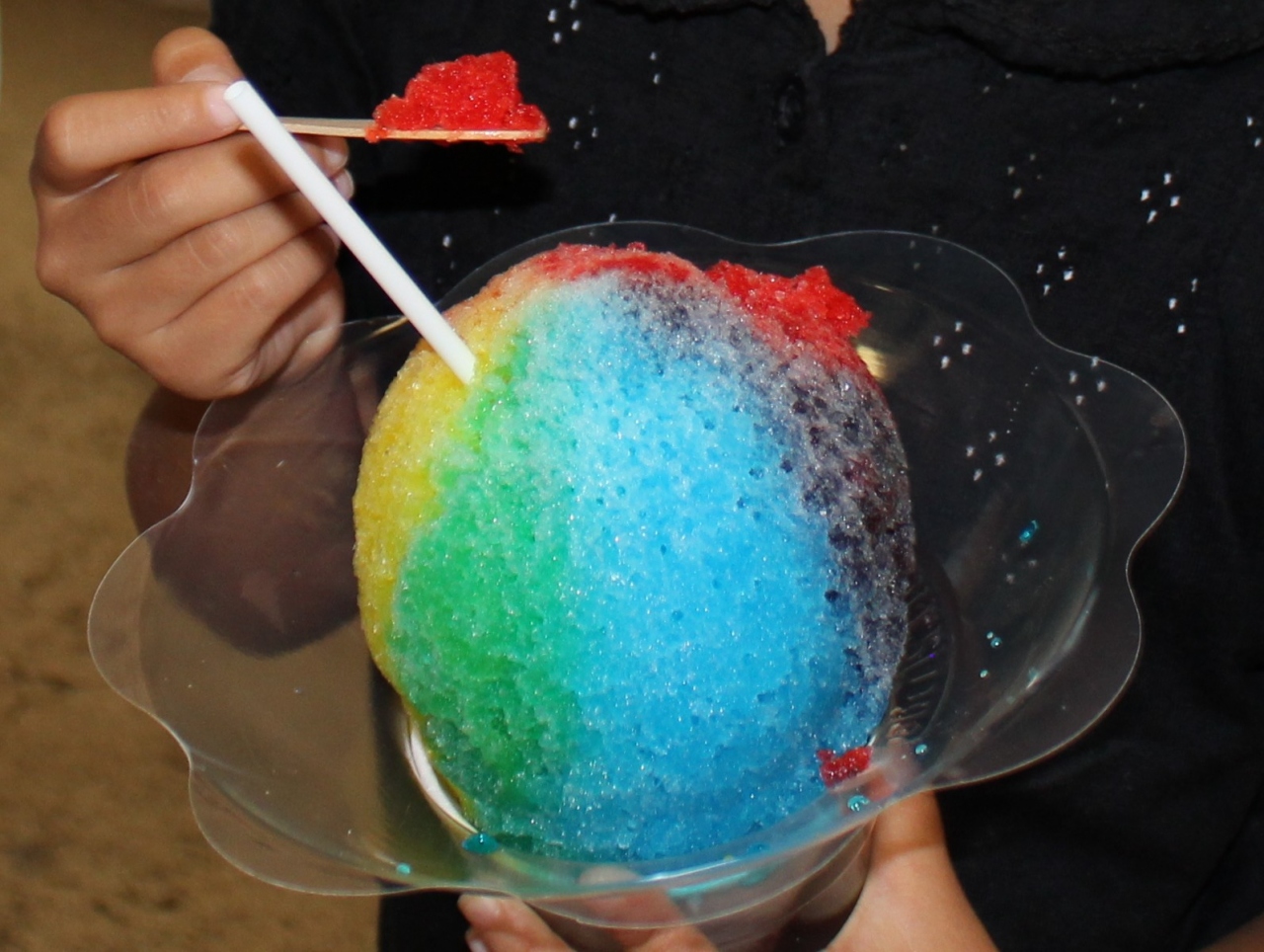 お店には朝10:00時に到着しました。Tシャツ等を販売しながらアイスも売っているという感じです。バニラ入りのレインボーを注文しました。