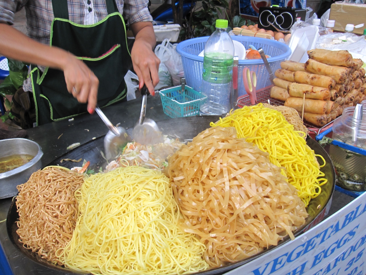 おススメは屋台で食べるパッタイ☆ジュースやパイナップルなどのデザートもつけて一食100円以下で過ごせます。
