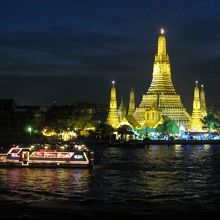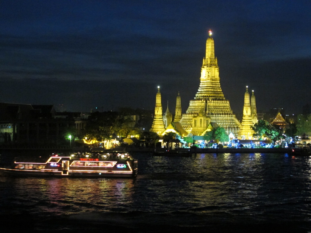 日没前からお店に入り、お酒を飲みながらライトアップされているワット・アルンはとてもきれいで素晴らしかったです。