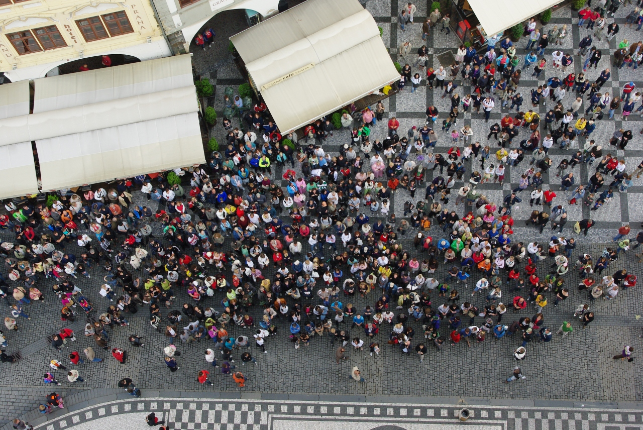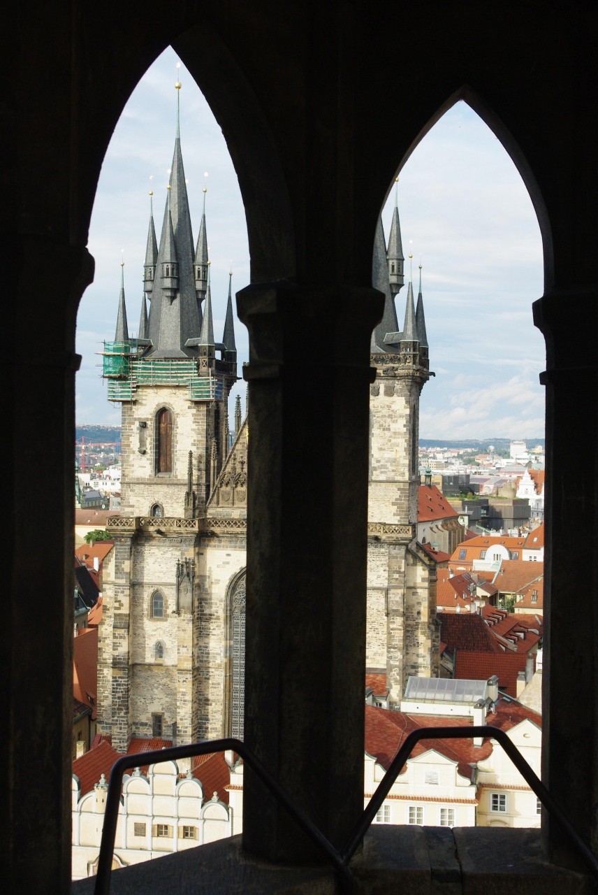 上からは旧市街広場、ティーン教会なんかを見渡すことができますが、おもしろいと思ったのは、からくり時計を見る人々です。