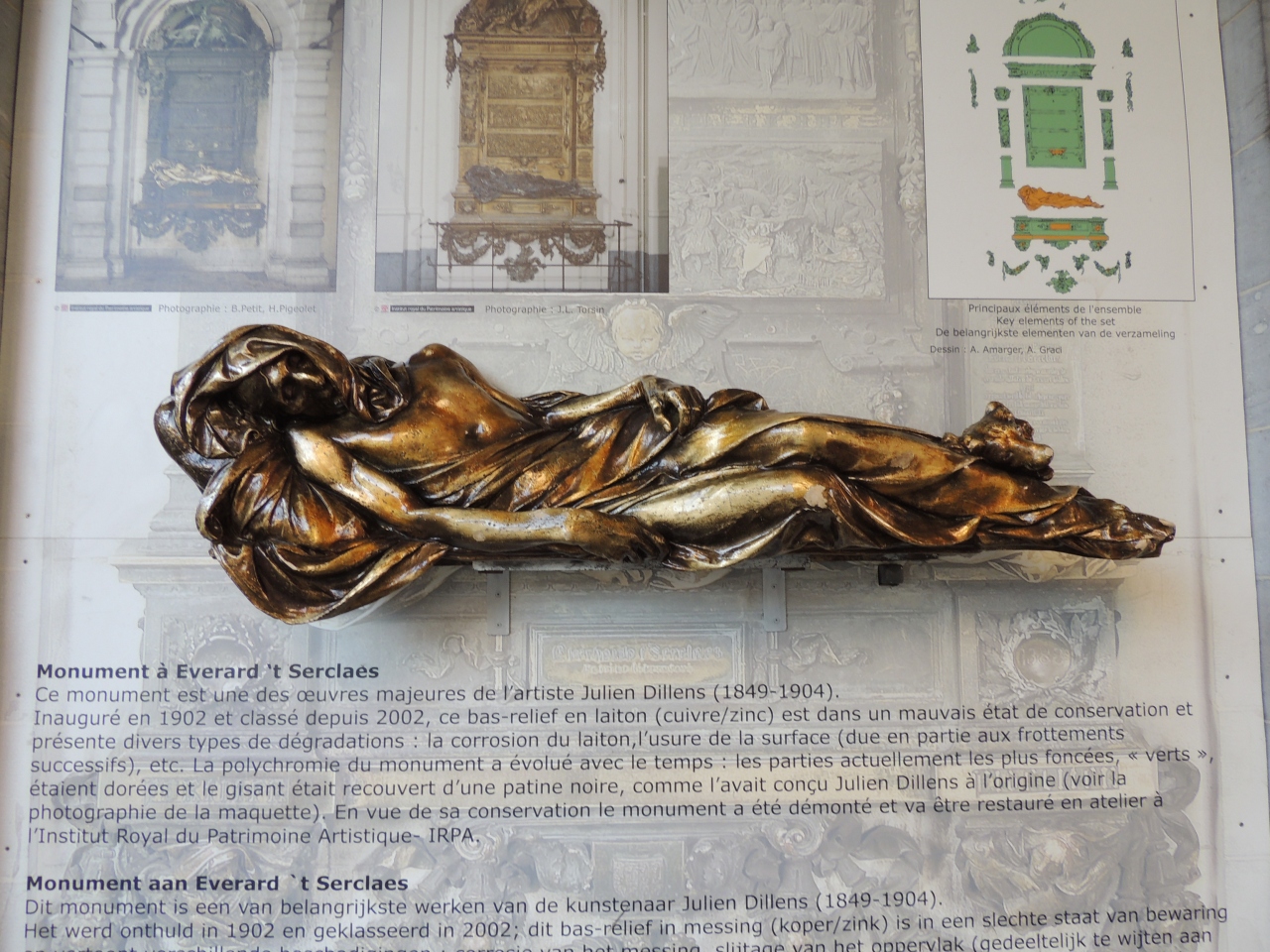 はじめ、気づいていなくて人が集まっていたので、行ってみたらありました。ホテルアミーゴの方から行くと、グランプラスに入る所の右側のグランプラスにある”星の家”下の壁(通路側)に面した所にあります。1388年に暗殺された町の英雄。触ったら、幸せになるとのことでいろんな人が触っています。触っとこ~。