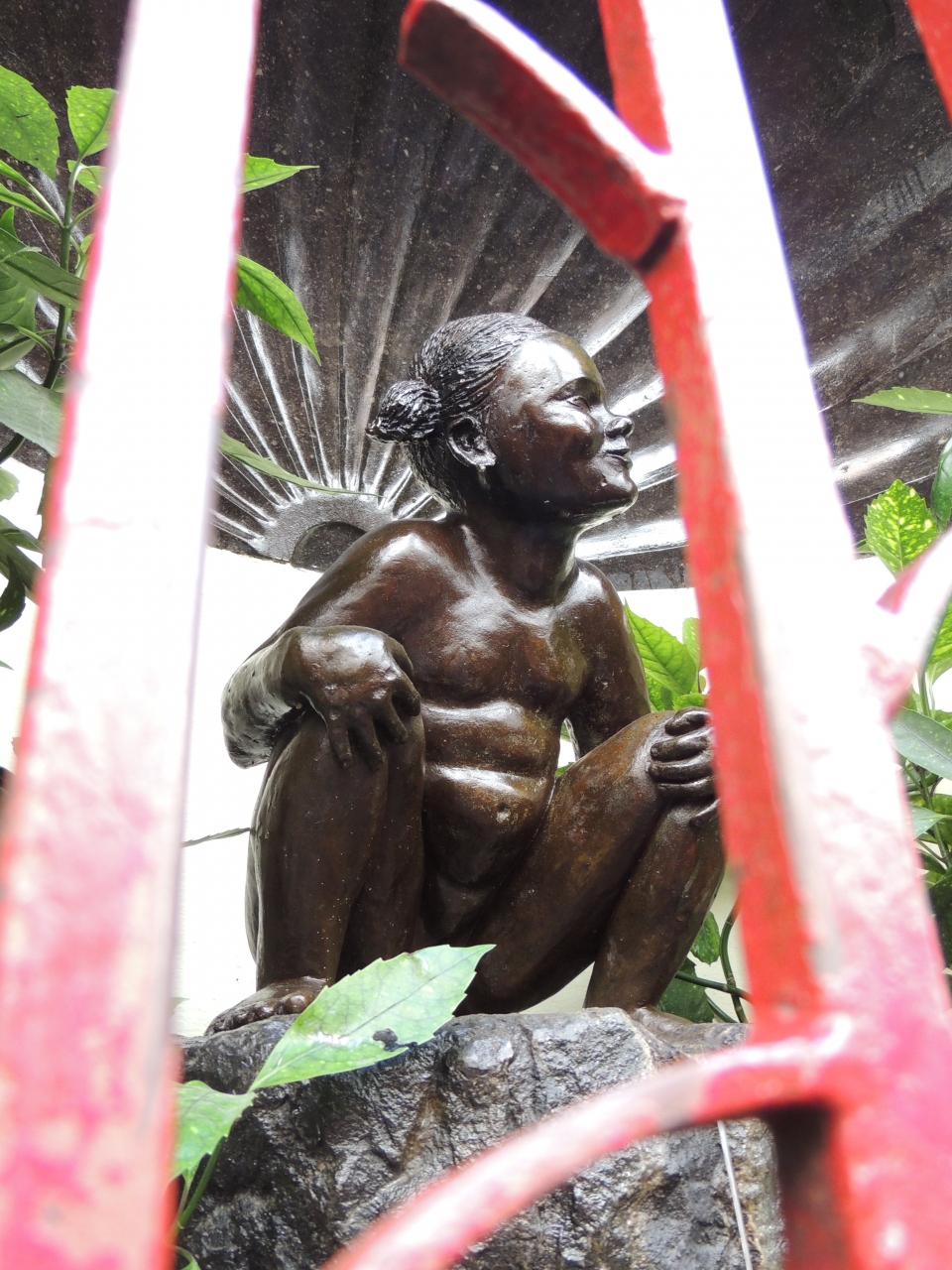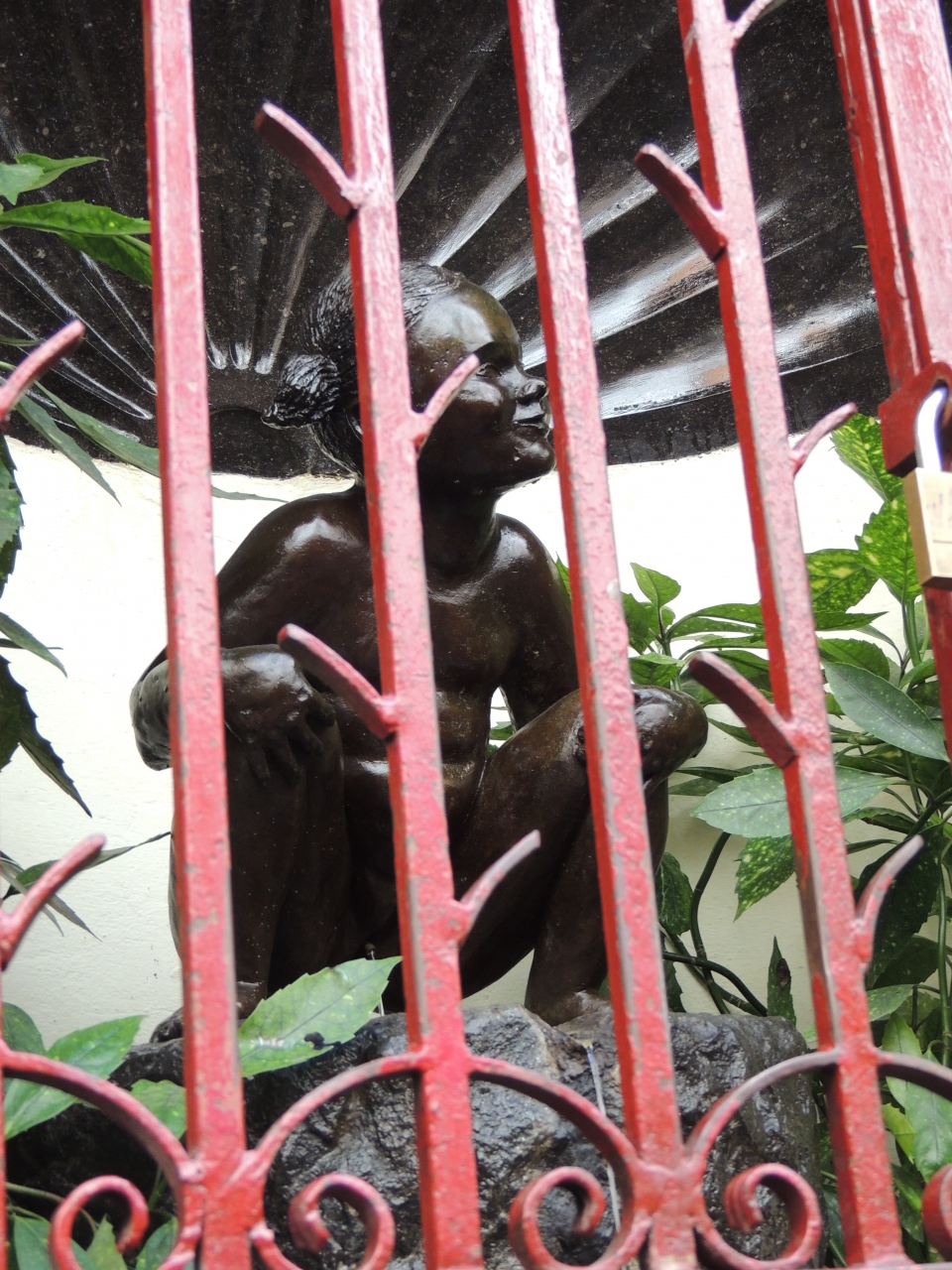いたずら防止の鉄格子の向こうでしゃがんでいるが、ちょっとリアルなため、写真とってそそくさと退散した