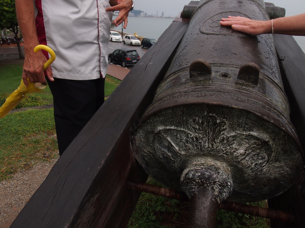 ツアーガイドいわく、大砲に触ると幸せになれるとのことだ。