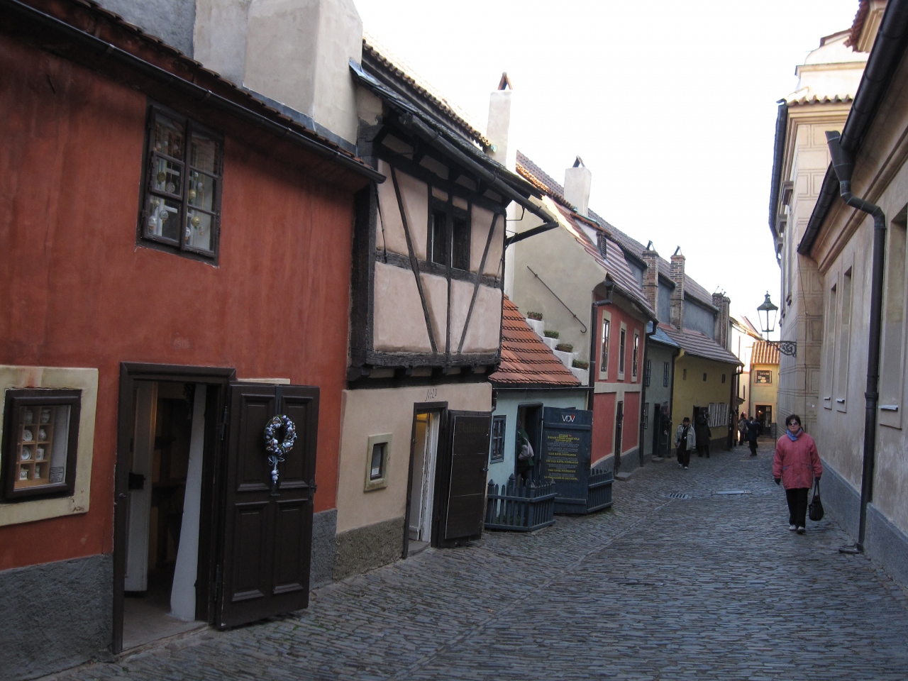 世界的な作家、フランツ・カフカゆかりの家があることで有名。細い路地の両側にはカラフルで可愛らしい家が並んでいて、その風景はちょっとメルヘンチックです。それらの家は、今はおみやげ物屋さんやギャラリーになっており、もちろん中を見ることができます。改築されてはいますが、よくよく観察すると家の作りなどから昔の生活がなんとなくですが感じられる場所もあります。