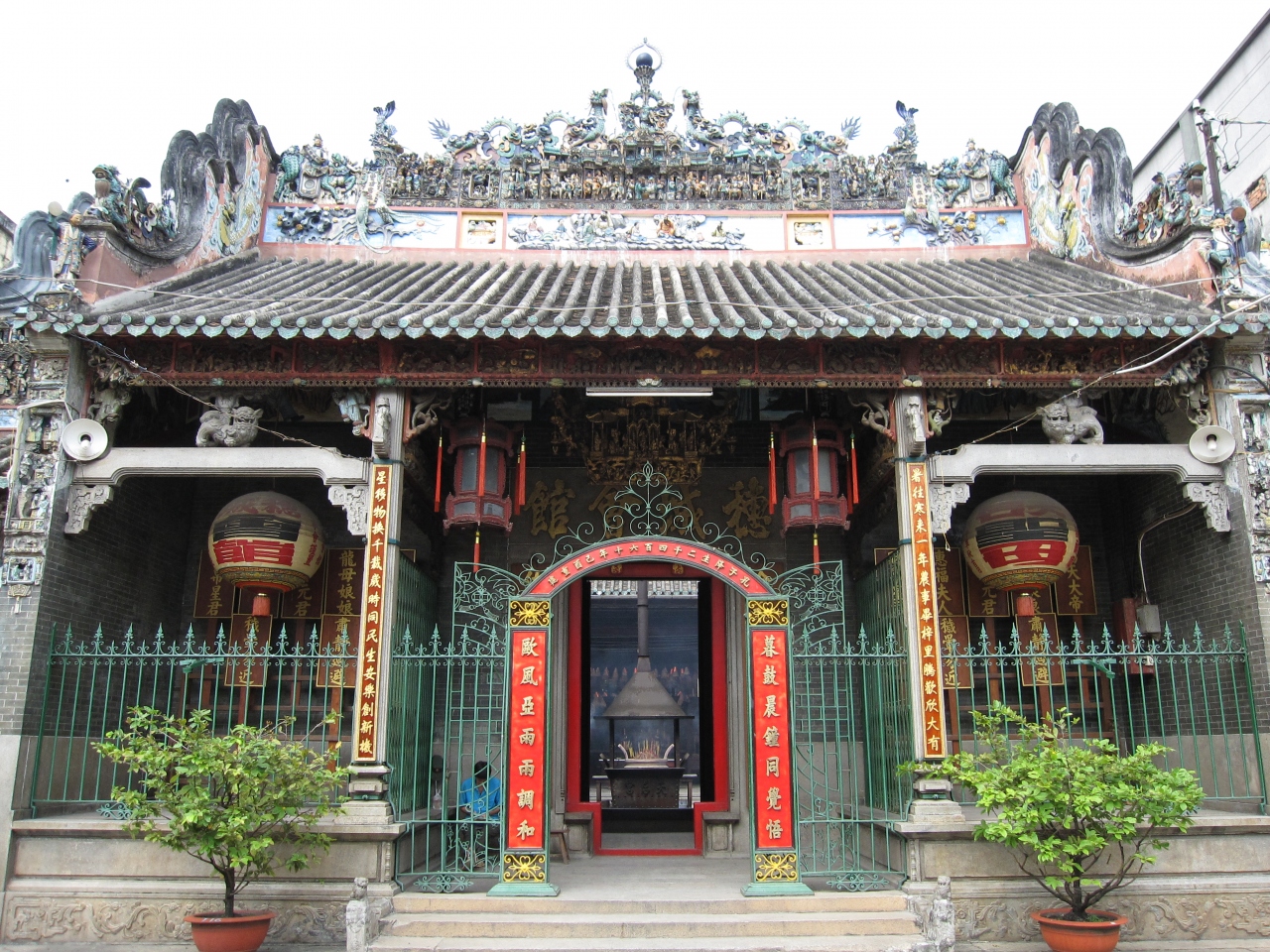 入り口が大変豪華。特に門の屋根に施された、竜や人の細かな彫刻はすばらしいです。