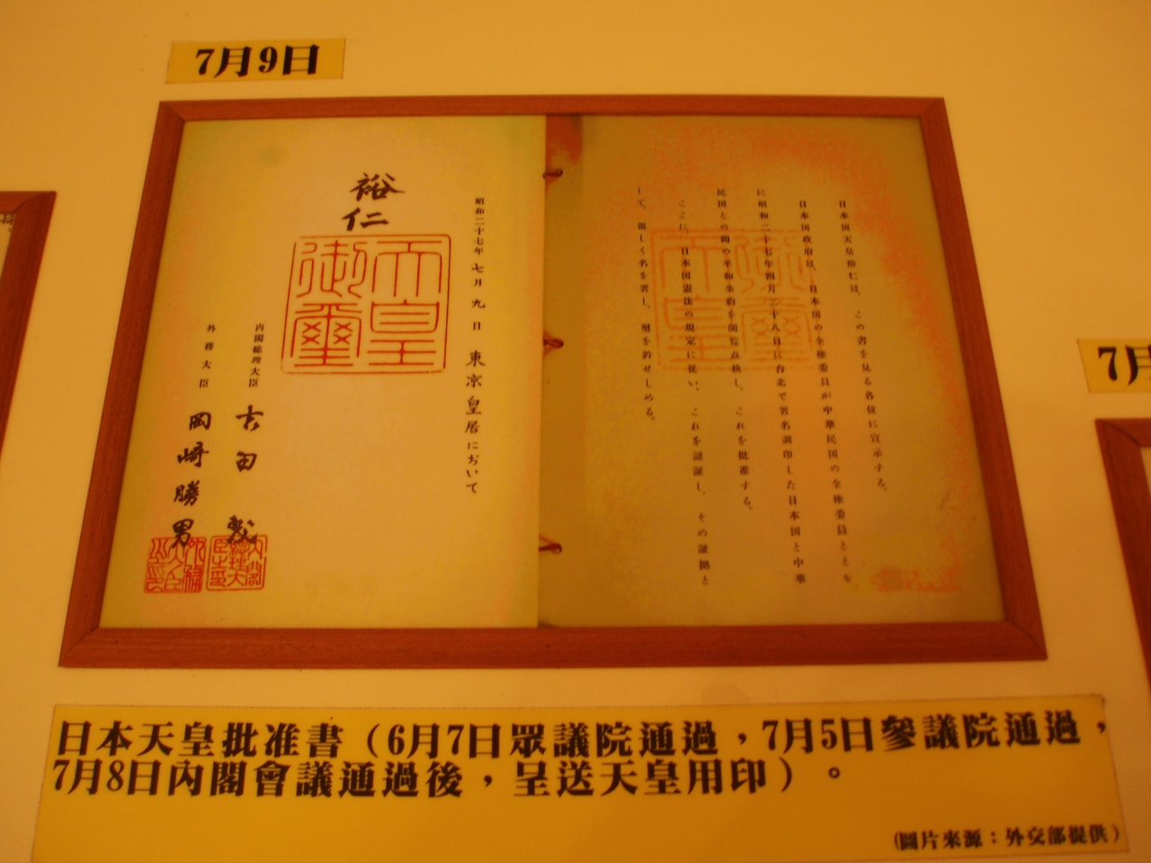 又この建物で戦後1952年に日本と中華民国は「日華条約」に調印して正式に台湾に対する日本統治権・領有権放棄と台湾と澎湖諸島の中華民国への帰属が確定しました。