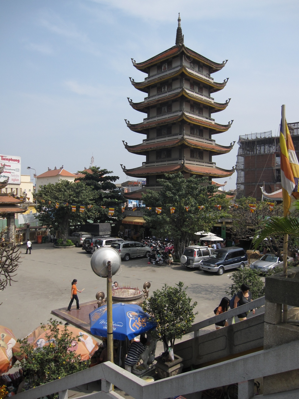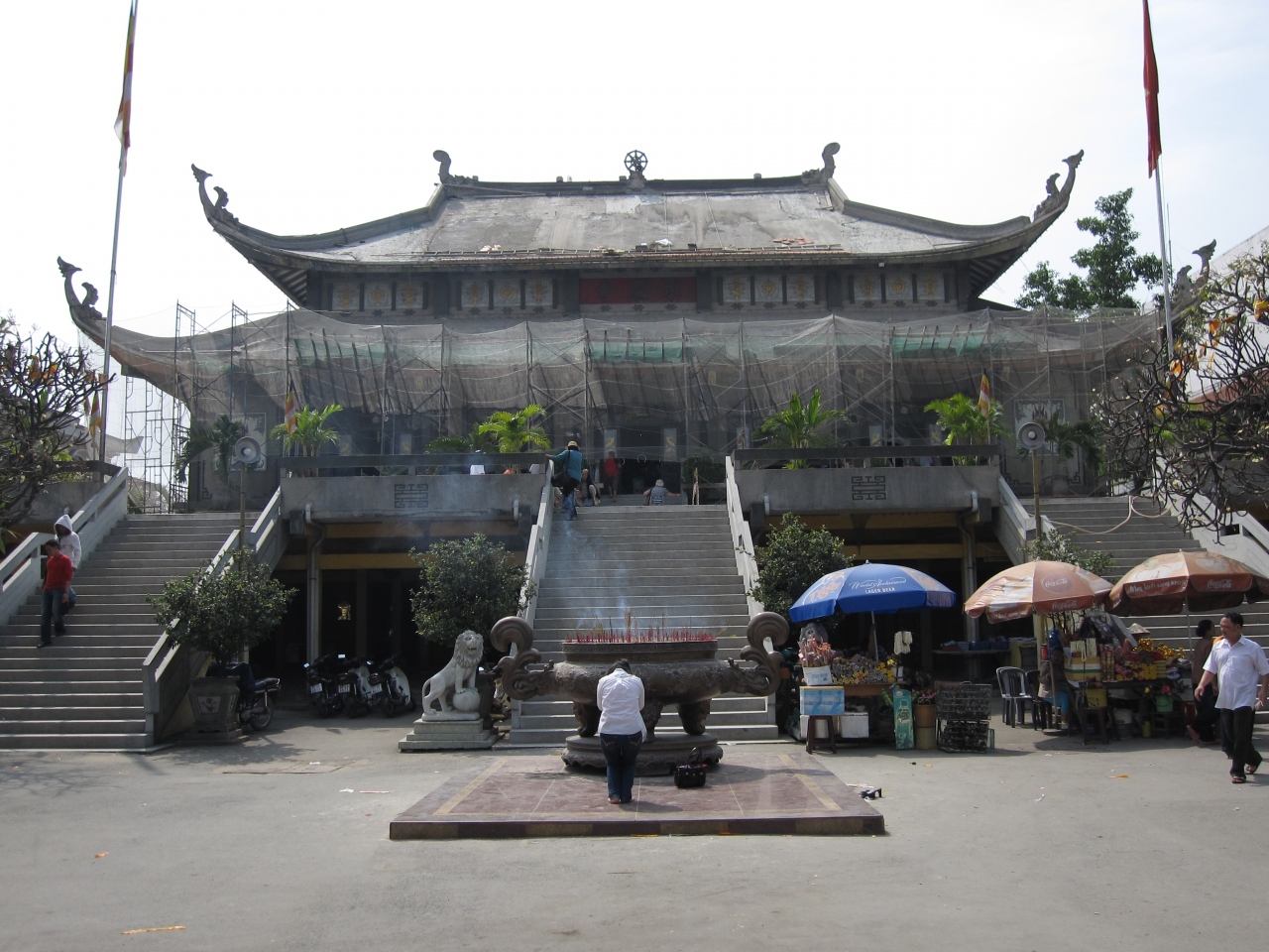 ホーチミン中心部からは離れた場所にあるのでタクシーを利用。大きな本殿は近代的なコンクリート作り。