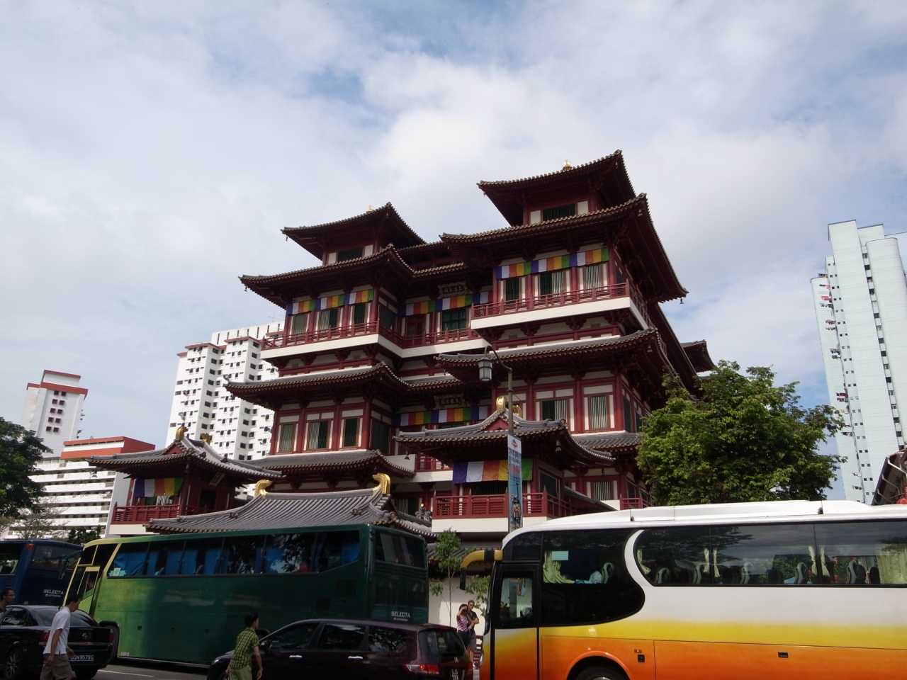 チャイナタウンのマックスウェル・フードセンターの向かいにある寺院で、朱色が鮮やかな外観は遠くからでもかなり目立つ建物です。チャイナタウンの中心近くでもあり、シンボリックな建物になっているようですね。入場は無料です。