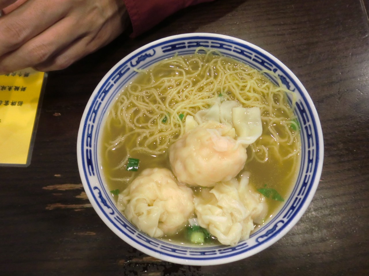 中環にある雲呑麺専家です。店の入れ替わりが早い香港にあって、老舗といっても差し支えのない店です。店内は改装され、今風になりました。看板メニューの雲呑麺の値段も「10HK$」のイメージが長かったのですが、ちょっとずつ上がり、22HK$になっていました。それでも、ワンタンが3つ乗っかっているところや、おいしい上湯は変わらぬままでした。
