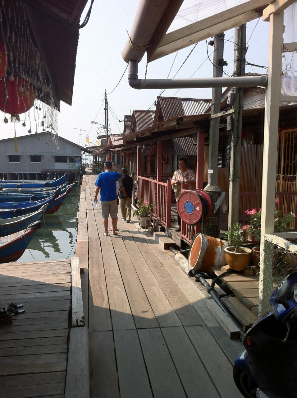 トライショーで1時間観光をお願いしたら連れていってくれました。着くなり「ココが世界遺産なの?」と思いましたが、細い路地を歩いて進んでみると、家々が海の上に建っており、そこで普通に暮らしている人々がいました。住民の方も見られるのに慣れているのか、玄関も開けっ放しでした。