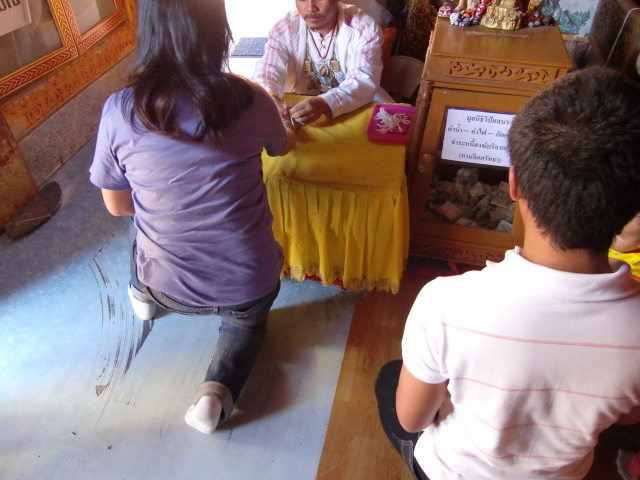 お坊さんに手にひもを結んでもらうところを発見して、しっかりしていただきました。