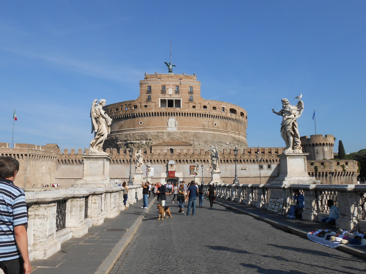 ヴァチカン見学の後、サンタンジェロ城の見学も行いました。サン・ピエトロ大聖堂からは徒歩で5分程度です。サンタンジェロ城は川沿いにあるので、川沿いを散歩しながらゆっくり観光するのも気持ちが良いと思います。