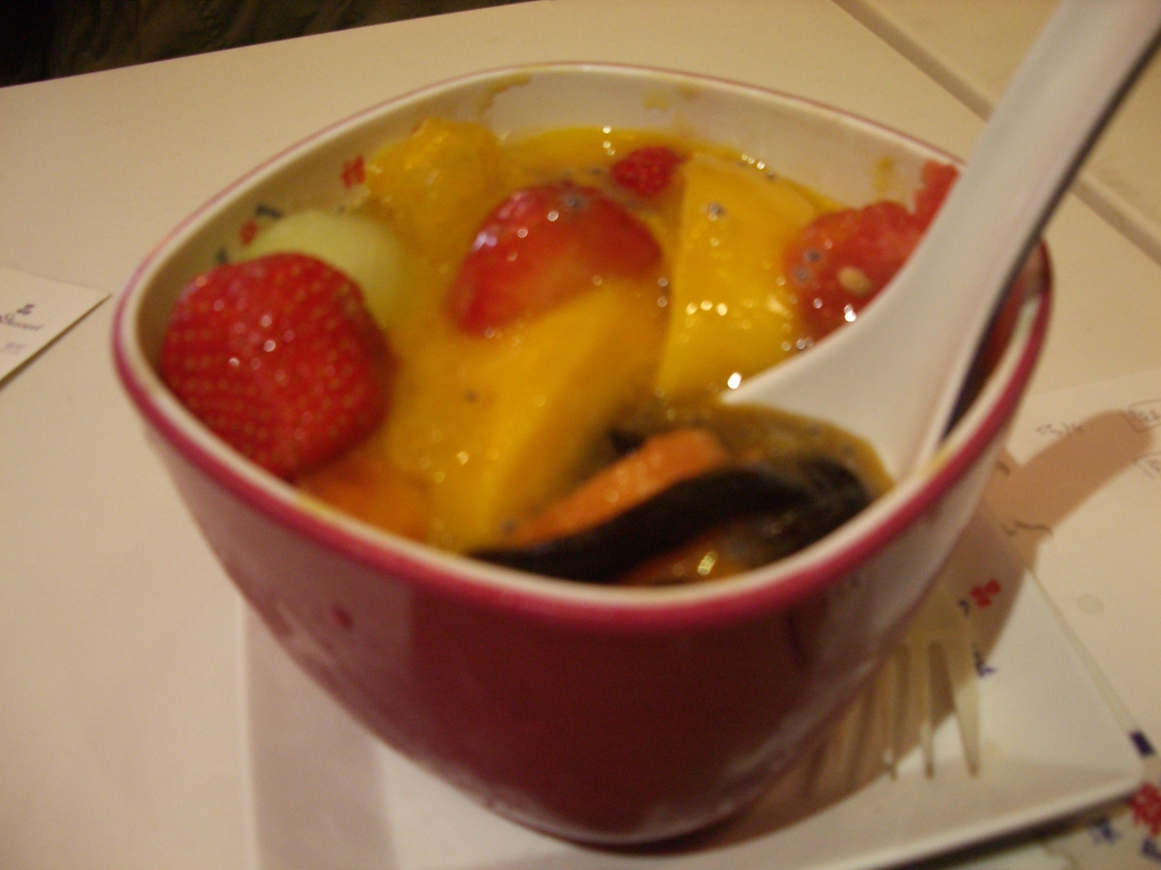 中にはタピオカ、パパイヤ、オレンジ色のメロン、トコロテンが入っていた。