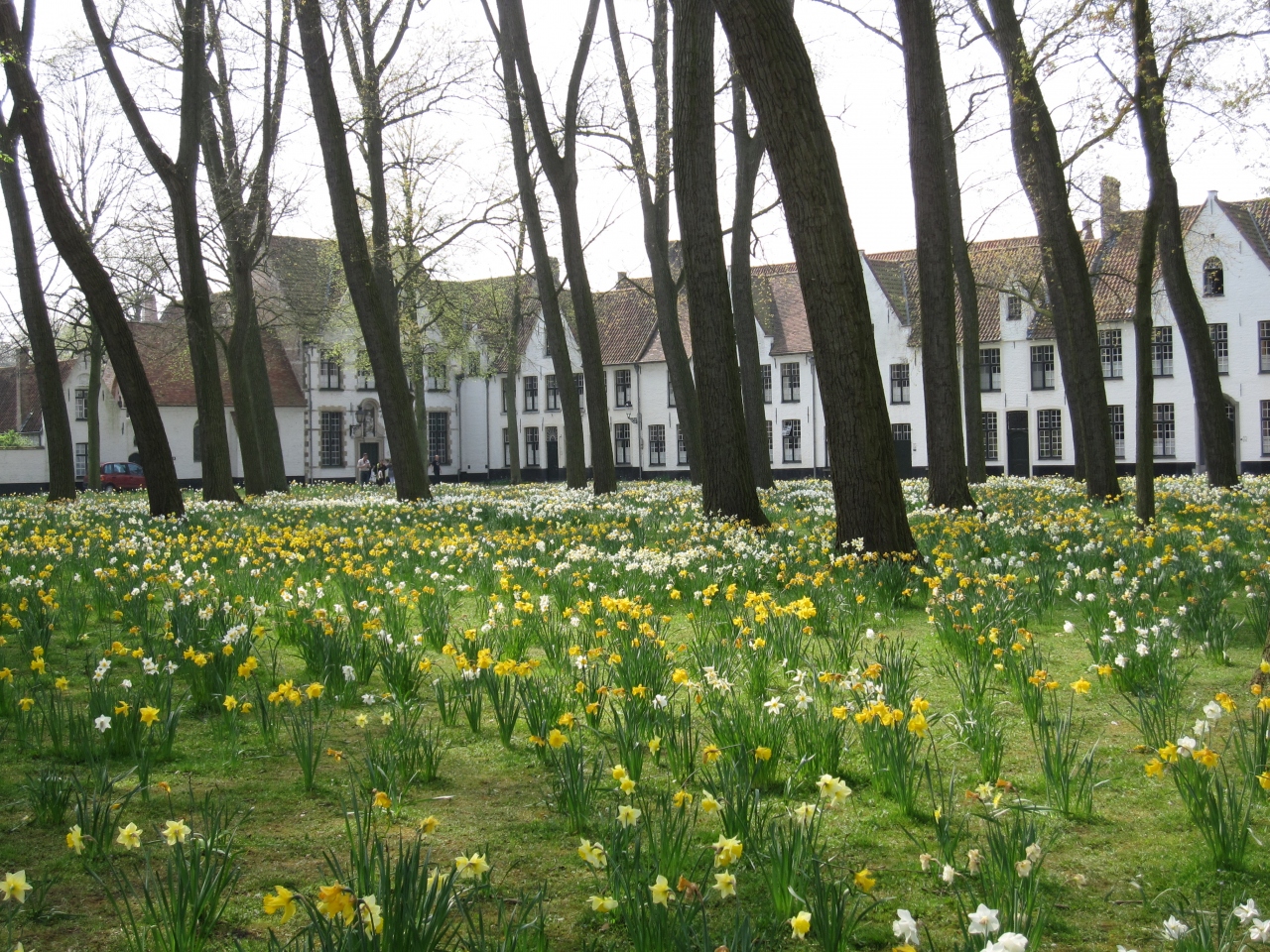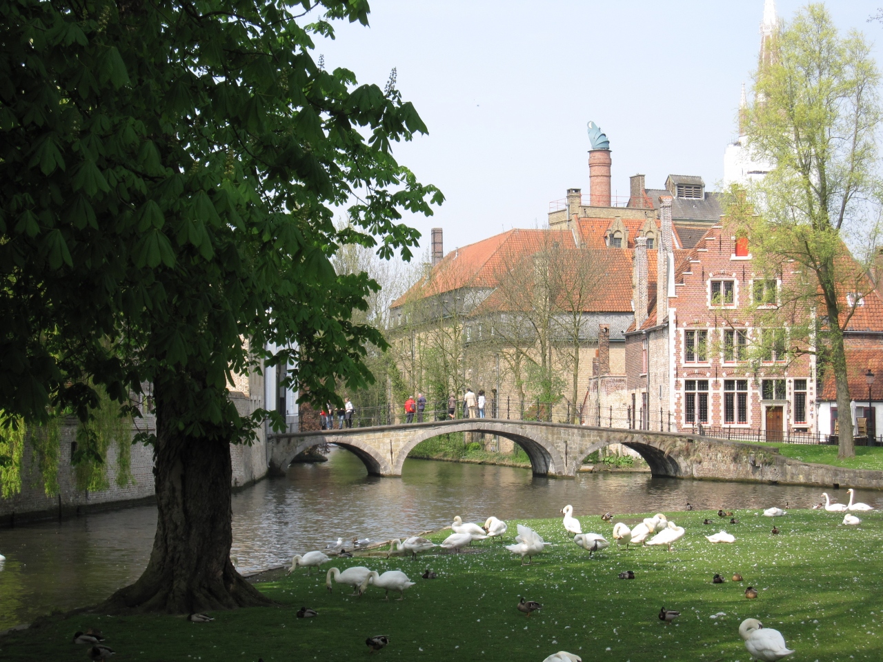 お庭が本当に美しかったです。私が訪れた4月はお花が沢山咲いていて、緑の色もとてもきれいでした。運河沿いには鳥が沢山集まっていて、馬車も沢山止まっていました。まるで絵本の世界に入ってるみたい。ブルージュで一番好きな場所です。
