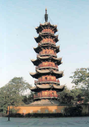 孫権の父孫堅が刑州の劉表との戦で戦死する。残された母の悲しみを慰める為に作られたと言われる。今の建物は清の光緒帝の時代のもの、中に千手千眼観音があり本当に千本有る大きな仏像です。また路を挟んで七層八角の龍華塔は宋時代のもので1000年の歴史が有る、上海で只一つの三国演義の場所です。