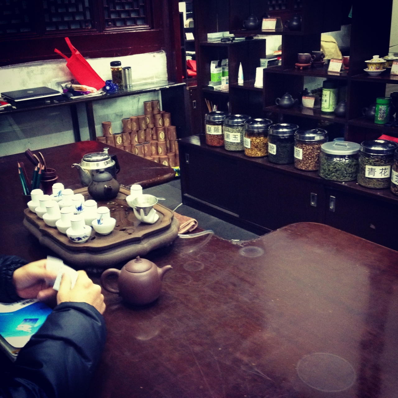 豫園は入場券を買って庭の中に入らなくても外観や周りの雰囲気で楽しめるところですが、せっかくなので庭の中へ。昔ながらの雰囲気が味わえます。入場券の半券を持っていると庭の順路の途中で建物の中にお茶屋があり、そこで色々な種類の中国茶のテイスティングをさせてもらえます。日本語の堪能なおばちゃんが詳しく説明してくれるし庭歩きに疲れた体を休めるのにもってこいです。試した中で2種類お茶を買いました。値段は安くないと思うけど、味はおいしく満足です。