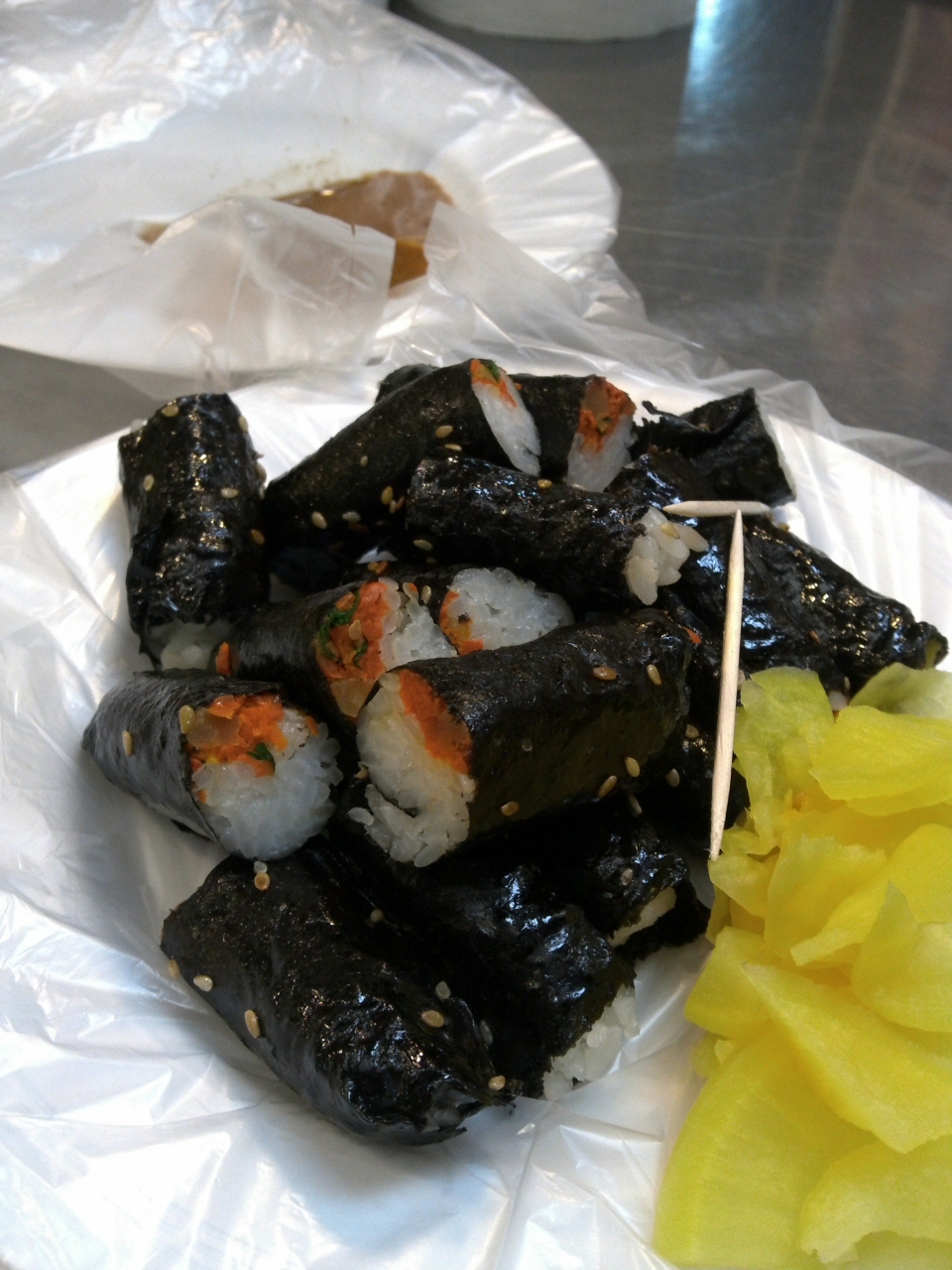 キンパW2500、韓国のお稲荷さんユブチョパW2500。テイクアウトも出来ます。
