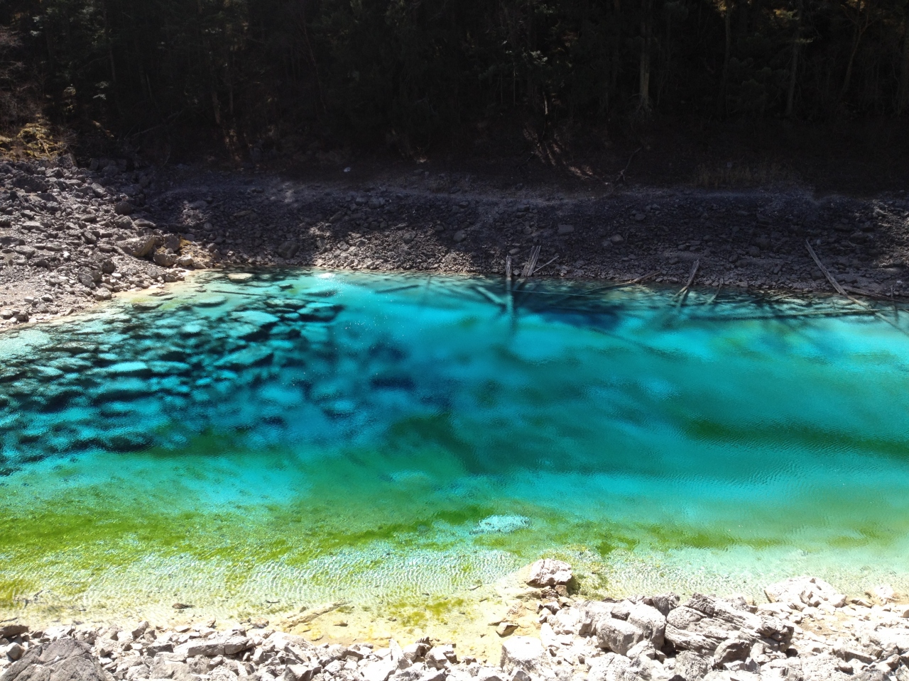 びっくりするぐらいキレイなブルーの透き通った池です。