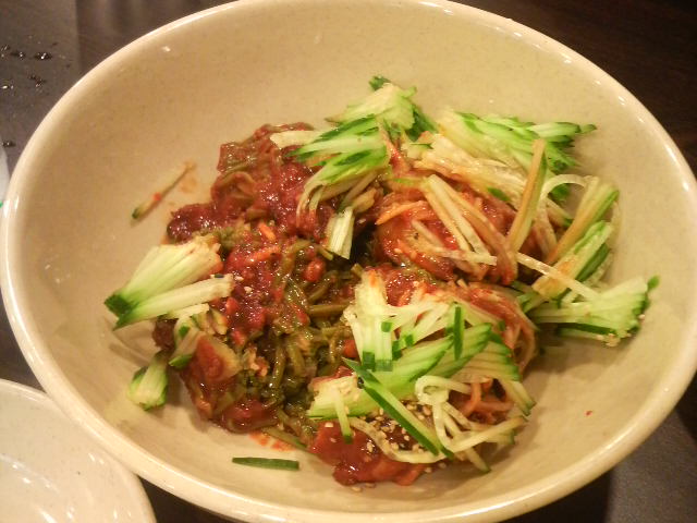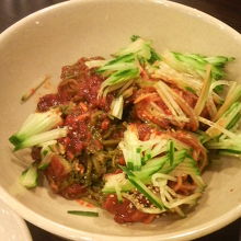 並ぶのはイヤだけど食べたいお店(笑)行列が空いたタイミングで入りましたが店内は大混雑。2階4人テーブル席に2対2の相席でした。店員さんも忙しく動き回っているし会計・オーダー・配膳など役割が決まっているようでオーダーの人を捉まえないと先に進めない感じでした。でも辛いキムチとマンドゥとビビングッスには大満足!