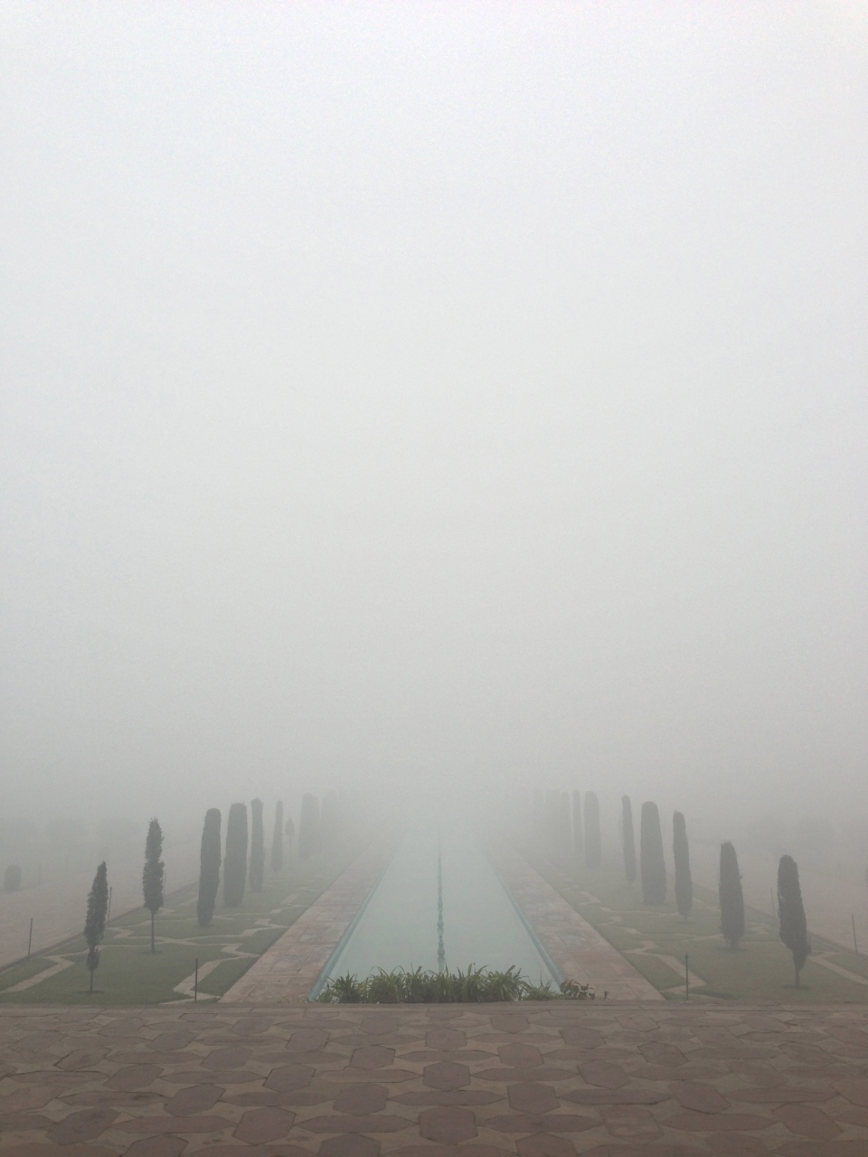 午前9時前に到着しましたが、大門をくぐってすぐに見えるはずのタージ・マハールは、朝もやで全く見えませんでした。