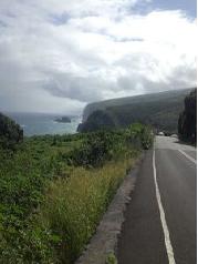 ワイコロアからレンタカーで出発し、海沿いを北上する際はずっと溶岩や砂漠の風景が続いていましたが、途中で緑の多い森の中を進むことに。途中に映画で見るような古いアメリカの街並みもあります。渓谷に近づくと深い緑の熱帯雨林のようななかを進みます。