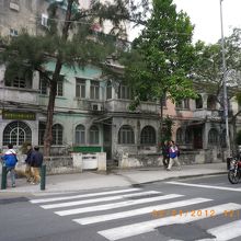 マカオの紅街市を抜けて旅遊學院(IFT)のレストランに行こうかなと思ってあるいていたら、古い長屋を見つけました。