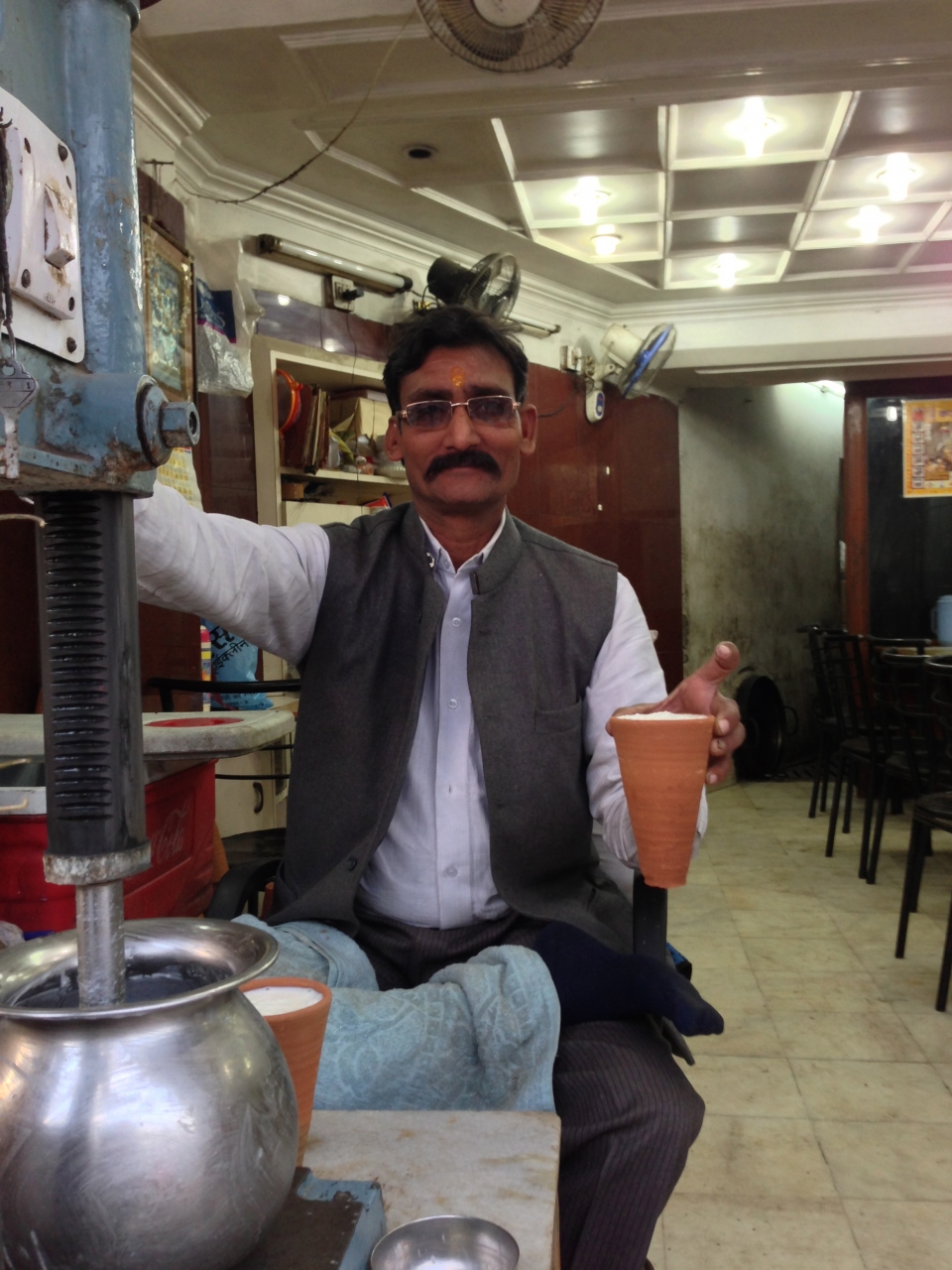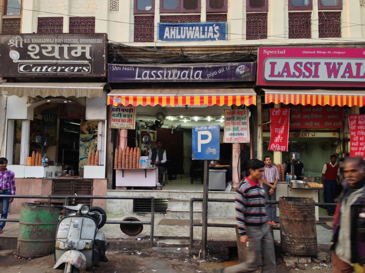 「地球の歩き方」でおなじみの看板おじちゃんが座っていてくれたので、すぐにココだと分かりました。隣り3~4軒は同じ店名のラッシー屋さんなので、「???」と思うのですが、黒っぽい軒先のお店が元祖です。クリーミーで他の地域で飲むラッシーとは別格です!