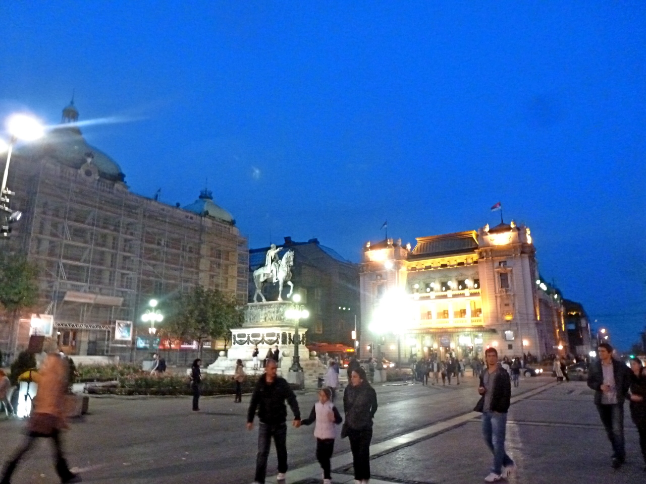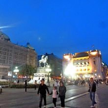 共和国広場にあるカフェ.金曜日の夕方ライトアップの華やかな中でビールとサラダを食べた.値段も手ごろだし,場所もいい.ミハイロ公の銅像のすぐそば.ビール200DINサラダ399DINと安い.歩き回って疲れたときに休むのに手ごろ