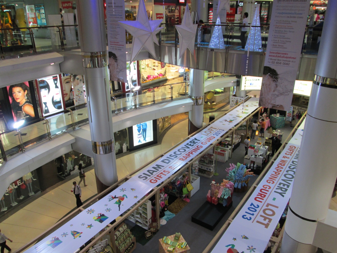 BTSサイアム駅に直結しているサイアムパラゴンとさらにつながっているサイアムセンターとサイアムデイスカバリーがあります。ディスカバリーはインテリア、雑貨を扱っている店が多いですが、駅から近いのがパラゴンで、デイスカバリーは離れているので、敬遠しがちになってしまいますが、お客が多いパラゴンよりは空いていて落ち着いて買い物ができます。