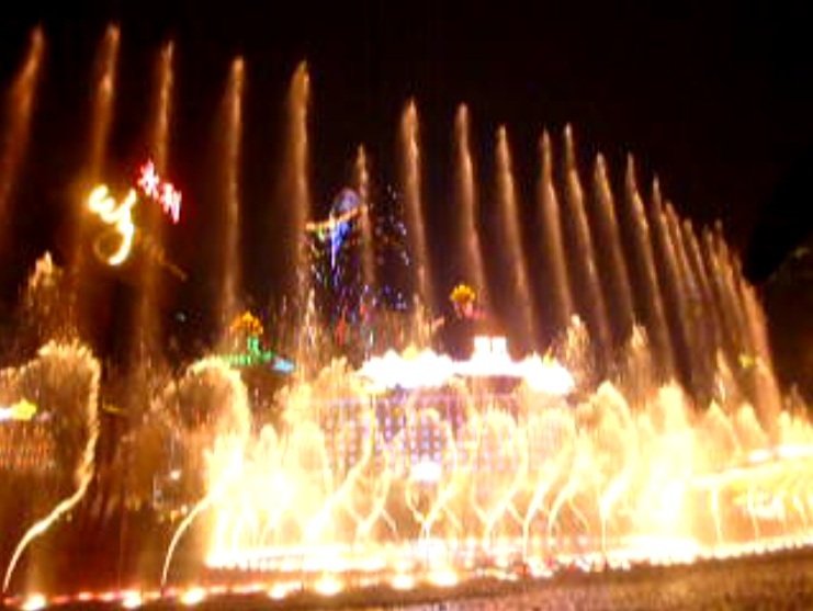 無料との事なので、噴水ショーを見に行ってきました。明るい時と夜景になってからも鑑賞しましたが、夜景の時が圧倒的に綺麗でした。特にホテル入口の方から鑑賞すると、背景の夜景が美しくて、一段と魅力的です。また、その夜景を池に映して写真を撮ったのですが、余り事前情報を確認してなかったせいもあり、あまりに綺麗でビックリでした。ホテルのロビーで行われるショーも無料ですので、行って見ても良いかも知れません。
