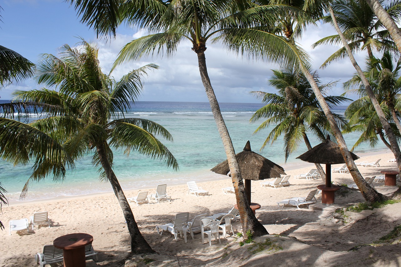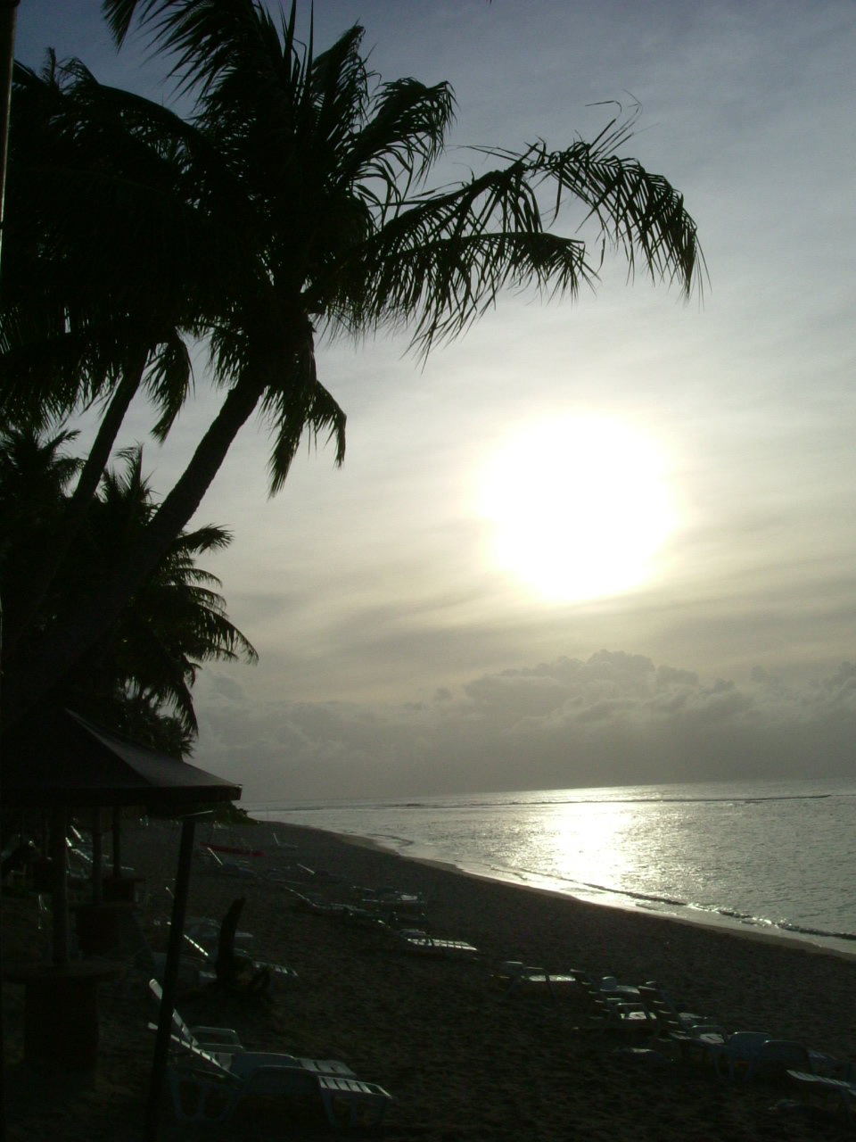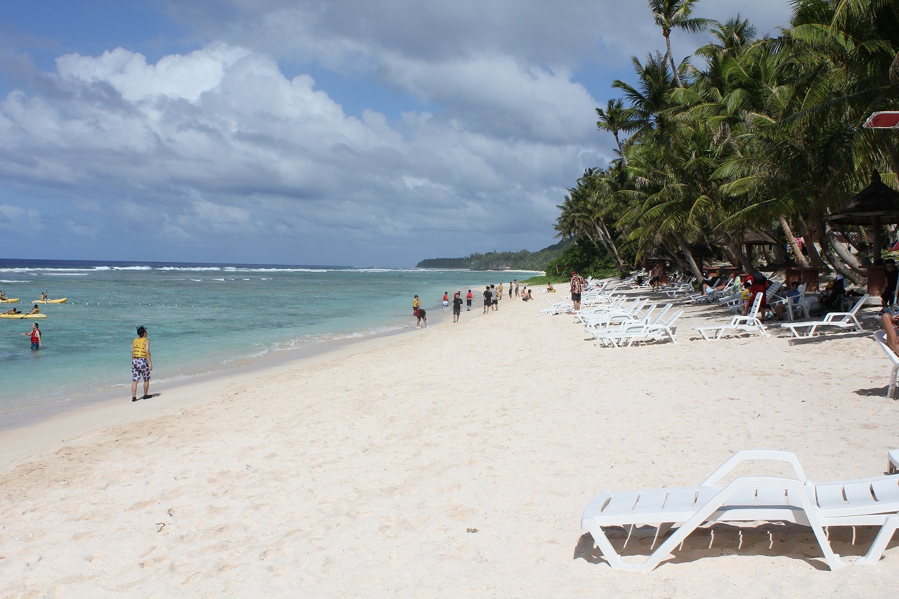 珊瑚礁の白い砂浜 どこまでも透明度の高い海 太陽の光の加減で色を変化させる様子もまた 驚きの美しさです。 そして パームツリーがこの自然のビーチを守って来たかと思わせるように生い茂っています。