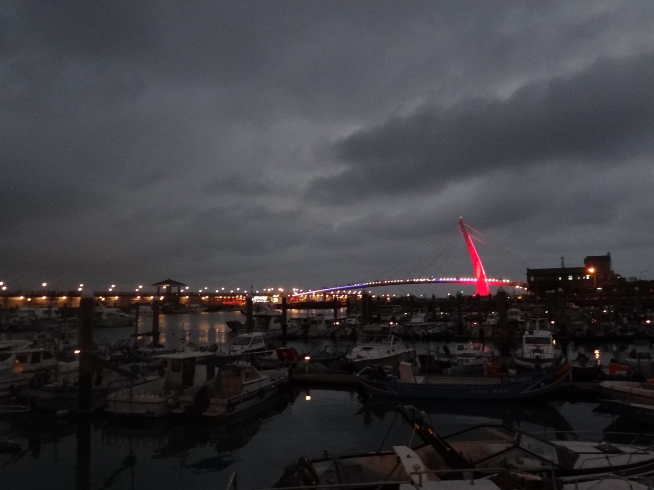 私が訪問した日は厚い雲がかかる曇天‥天気が良ければ青い水面、夕焼け、夜景が綺麗でしょうね。シンボルの白い桟橋は夜ライトアップされます。