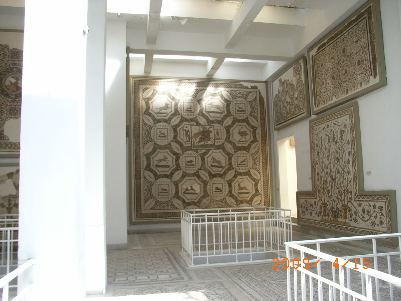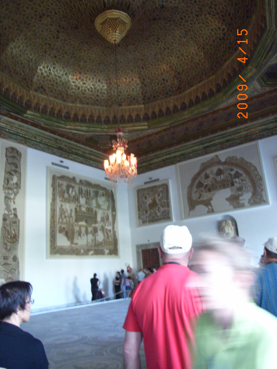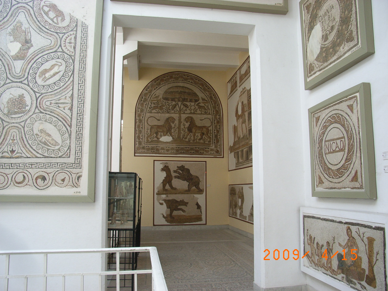 イスラム装飾のギャラリーは、ベイ(オスマン時代の長官)のハーレムの女性たちの部屋が広間をぐるりと取り囲んでいる。陰影が美しく、アラベスクで埋め尽くされており、中央の床にはゾーディアック(星座)を描いたモザイク、壁のひとつには、ヴェルギリウス(ヴァージル)が歴史の女神クリオ、悲劇の女神メロポメネからインスピレーションを受け、叙事詩「アエネーイス(アイネイアス)」を書いているとろ・・・と解説が書かれていました。これは必見です。